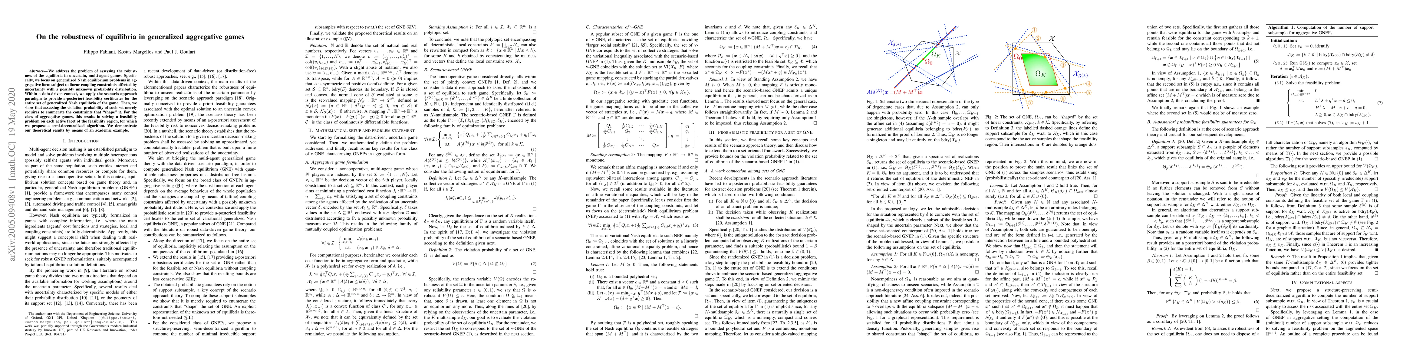 This paper investigates the robustness of equilibria in uncertain multi-agent games, particularly generalized Nash equilibria under linear coupling constraints. It employs a data-driven scenario approach to provide feasibility certificates and proposes a semi-decentralized algorithm to solve feasibility problems on active facets, demonstrating the method with an academic example.