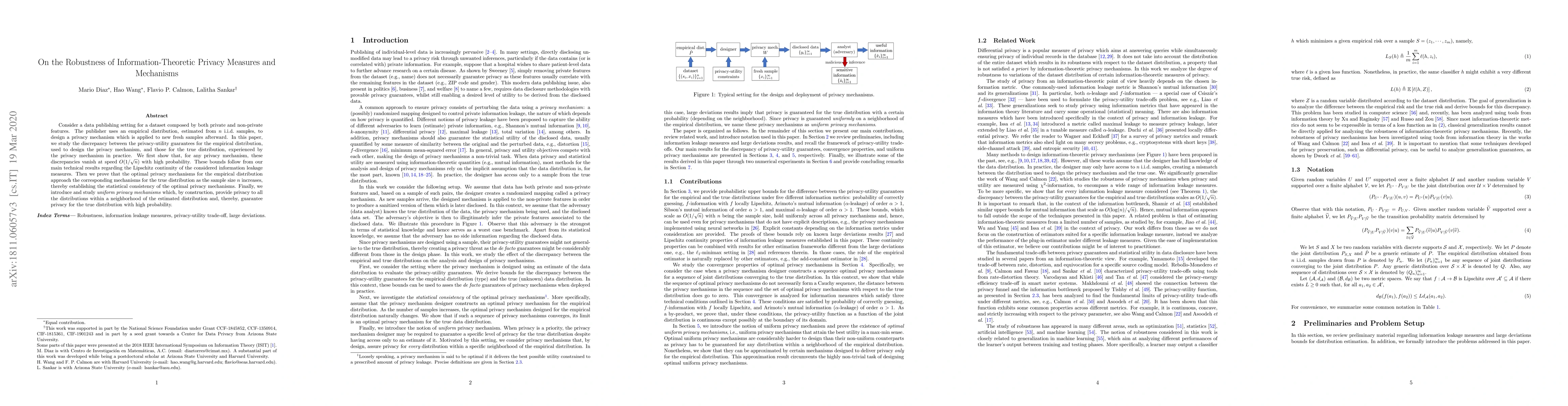 Consider a data publishing setting for a dataset composed by both private and non-private features. The publisher uses an empirical distribution, estimated from $n$ i.i.d. samples, to design a privacy mechanism which is applied to new fresh samples afterward. In this paper, we study the discrepancy between the privacy-utility guarantees for the empirical distribution, used to design the privacy mechanism, and those for the true distribution, experienced by the privacy mechanism in practice. We first show that, for any privacy mechanism, these discrepancies vanish at speed $O(1/\sqrt{n})$ with high probability. These bounds follow from our main technical results regarding the Lipschitz continuity of the considered information leakage measures. Then we prove that the optimal privacy mechanisms for the empirical distribution approach the corresponding mechanisms for the true distribution as the sample size $n$ increases, thereby establishing the statistical consistency of the optimal privacy mechanisms. Finally, we introduce and study uniform privacy mechanisms which, by construction, provide privacy to all the distributions within a neighborhood of the estimated distribution and, thereby, guarantee privacy for the true distribution with high probability.