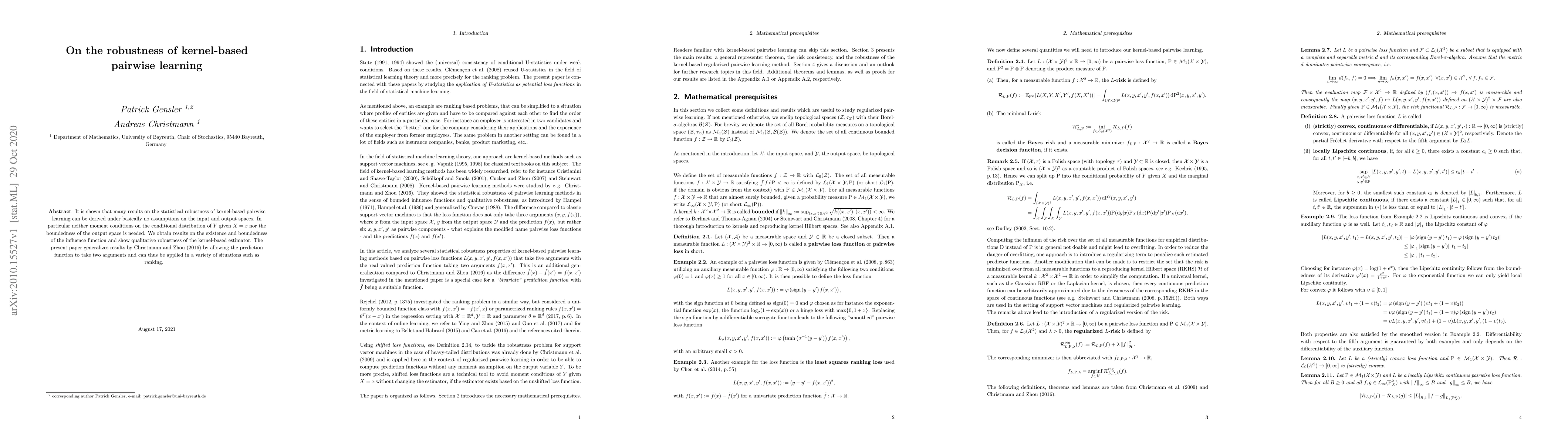 It is shown that many results on the statistical robustness of kernel-based pairwise learning can be derived under basically no assumptions on the input and output spaces. In particular neither moment conditions on the conditional distribution of Y given X = x nor the boundedness of the output space is needed. We obtain results on the existence and boundedness of the influence function and show qualitative robustness of the kernel-based estimator. The present paper generalizes results by Christmann and Zhou (2016) by allowing the prediction function to take two arguments and can thus be applied in a variety of situations such as ranking.