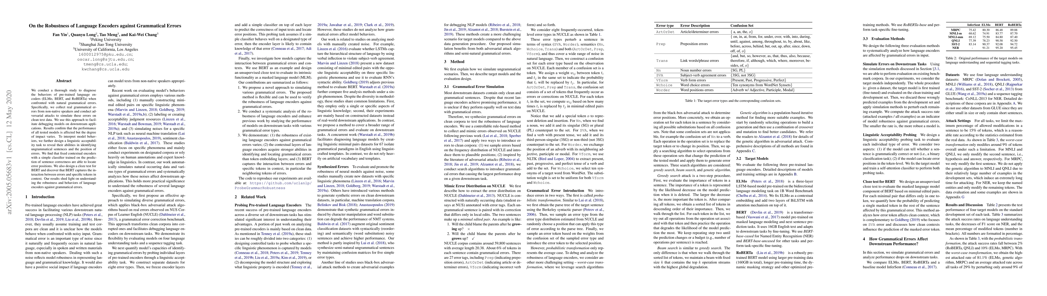 This research sheds light on understanding the robustness and behaviors of language encoders against grammatical errors, which is crucial for improving downstream applications' performance.