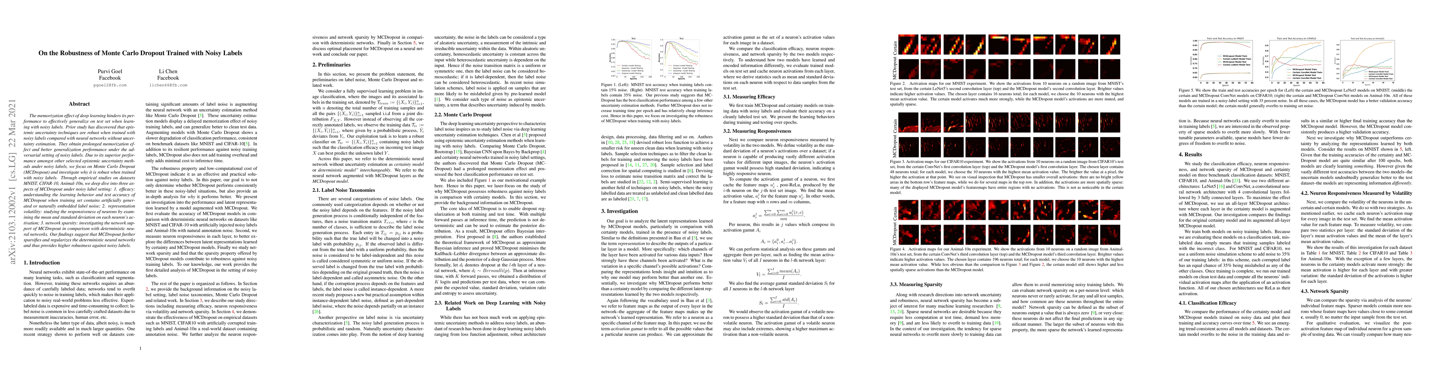 The memorization effect of deep learning hinders its performance to effectively generalize on test set when learning with noisy labels. Prior study has discovered that epistemic uncertainty techniques are robust when trained with noisy labels compared with neural networks without uncertainty estimation. They obtain prolonged memorization effect and better generalization performance under the adversarial setting of noisy labels. Due to its superior performance amongst other selected epistemic uncertainty methods under noisy labels, we focus on Monte Carlo Dropout (MCDropout) and investigate why it is robust when trained with noisy labels. Through empirical studies on datasets MNIST, CIFAR-10, Animal-10n, we deep dive into three aspects of MCDropout under noisy label setting: 1. efficacy: understanding the learning behavior and test accuracy of MCDropout when training set contains artificially generated or naturally embedded label noise; 2. representation volatility: studying the responsiveness of neurons by examining the mean and standard deviation on each neuron's activation; 3. network sparsity: investigating the network support of MCDropout in comparison with deterministic neural networks. Our findings suggest that MCDropout further sparsifies and regularizes the deterministic neural networks and thus provides higher robustness against noisy labels.
