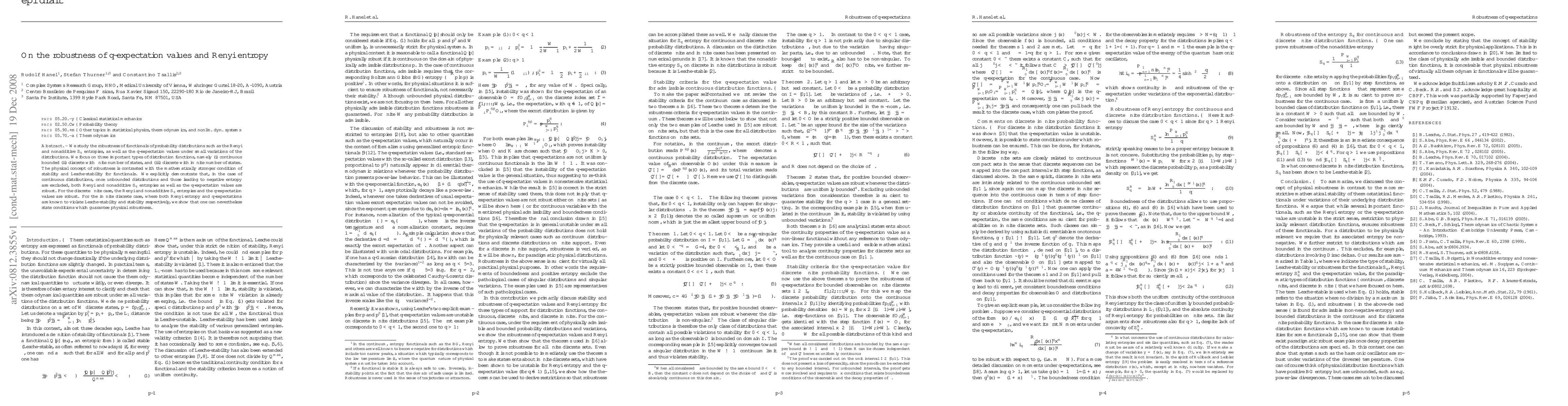 This study examines the robustness of q-expectation values and Renyi entropy under small distribution variations, finding that certain entropies remain robust in various scenarios.
