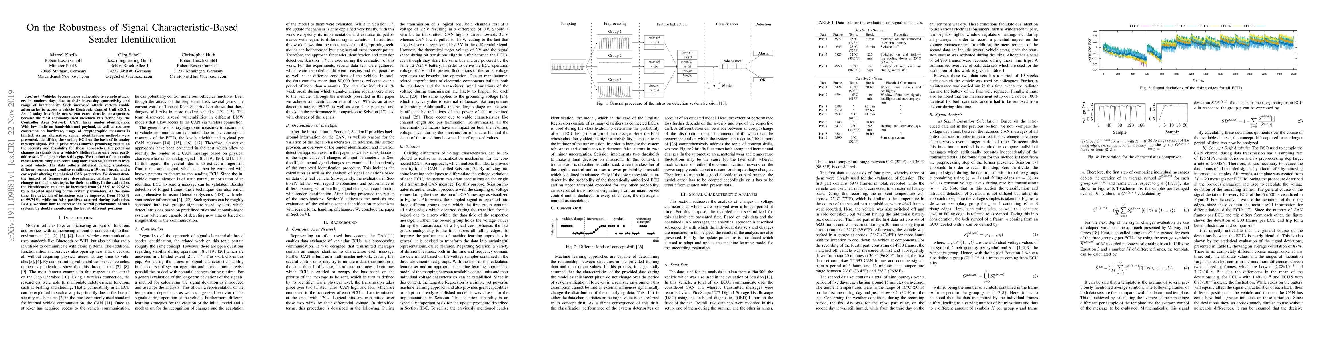 Vehicles become more vulnerable to remote attackers in modern days due to their increasing connectivity and range of functionality. Such increased attack vectors enable adversaries to access a vehicle Electronic Control Unit (ECU). As of today in-vehicle access can cause drastic consequences, because the most commonly used in-vehicle bus technology, the Controller Area Network (CAN), lacks sender identification. With low limits on bandwidth and payload, as well as resource constrains on hardware, usage of cryptographic measures is limited. As an alternative, sender identification methods were presented, identifying the sending ECU on the basis of its analog message signal. While prior works showed promising results on the security and feasibility for those approaches, the potential changes in signals over a vehicle's lifetime have only been partly addressed. This paper closes this gap. We conduct a 4~months measurement campaign containing more than 80,000 frames from a real vehicle. The data reflects different driving situations, different seasons and weather conditions, a 19-week break, and a car repair altering the physical CAN properties. We demonstrate the impact of temperature dependencies, analyze the signal changes and define strategies for their handling. In the evaluation, the identification rate can be increased from 91.23% to 99.98% by a targeted updating of the system parameters. At the same time, the detection of intrusions can be improved from 76.83% to 99.74%, while no false positives occured during evaluation. Lastly, we show how to increase the overall performance of such systems by double monitoring the bus at different positions.