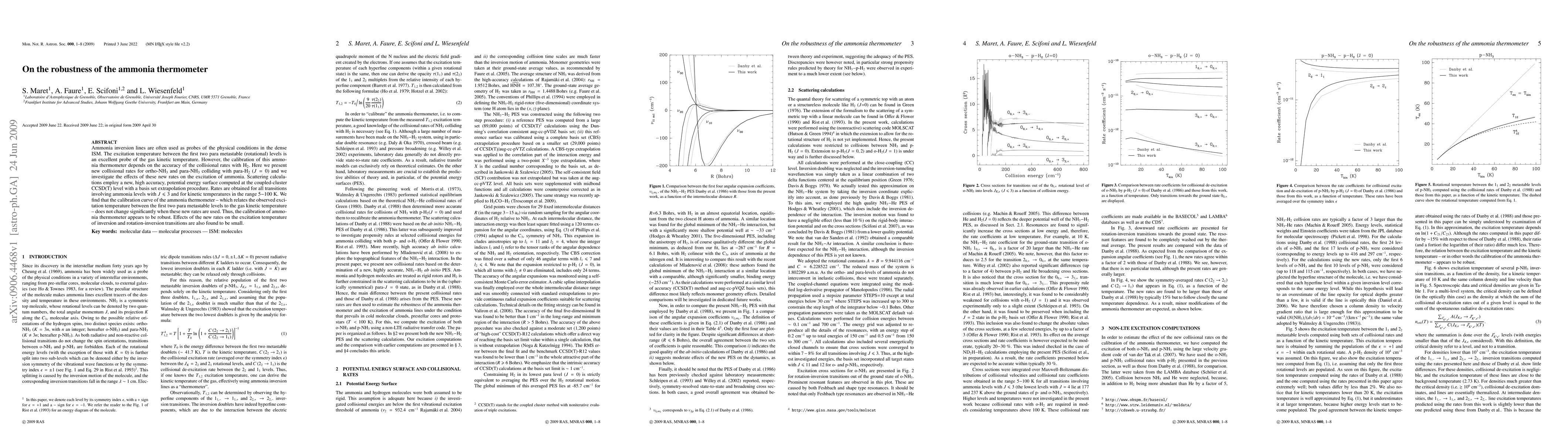 Ammonia inversion lines are often used as probes of the physical conditions in the dense ISM. The excitation temperature between the first two para metastable (rotational) levels is an excellent probe of the gas kinetic temperature. However, the calibration of this ammonia thermometer depends on the accuracy of the collisional rates with H2. Here we present new collisional rates for ortho-NH3 and para-NH3 colliding with para-H2 (J=0) and we investigate the effects of these new rates on the excitation of ammonia. Scattering calculations employ a new, high accuracy, potential energy surface computed at the coupled-cluster CCSD(T) level with a basis set extrapolation procedure. Rates are obtained for all transitions involving ammonia levels with J <= 3 and for kinetic temperatures in the range 5-100 K. We find that the calibration curve of the ammonia thermometer -- which relates the observed excitation temperature between the first two para metastable levels to the gas kinetic temperature -- does not change significantly when these new rates are used. Thus, the calibration of ammonia thermometer appears to be robust. Effects of the new rates on the excitation temperature of inversion and rotation-inversion transitions are also found to be small.