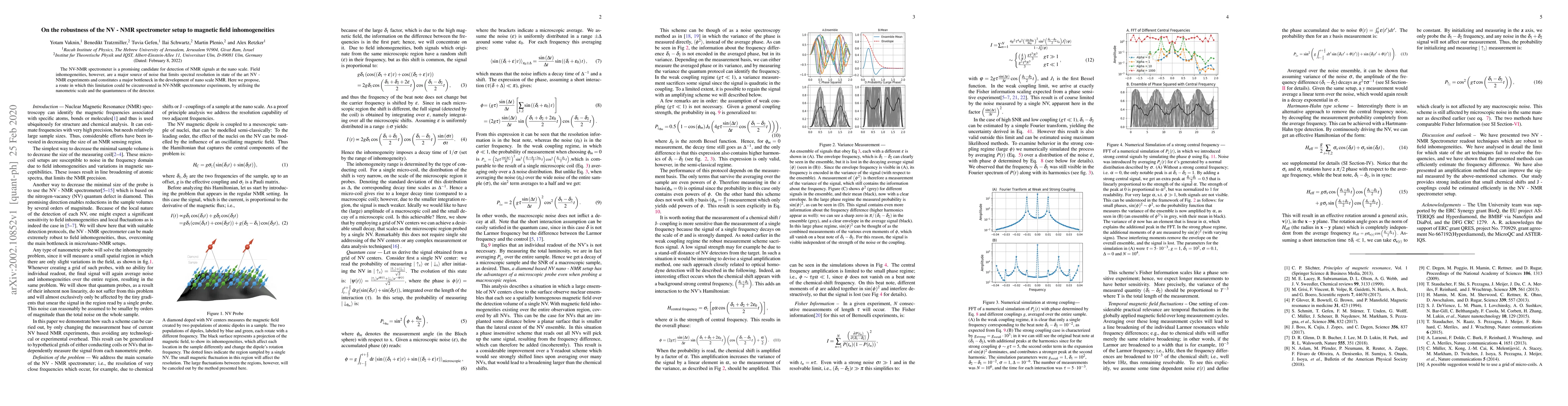 This paper investigates the robustness of NV-NMR spectrometers against magnetic field inhomogeneities, which currently limit spectral resolution. The authors propose leveraging the nanometric scale and quantum properties of the NV center to potentially overcome these limitations.