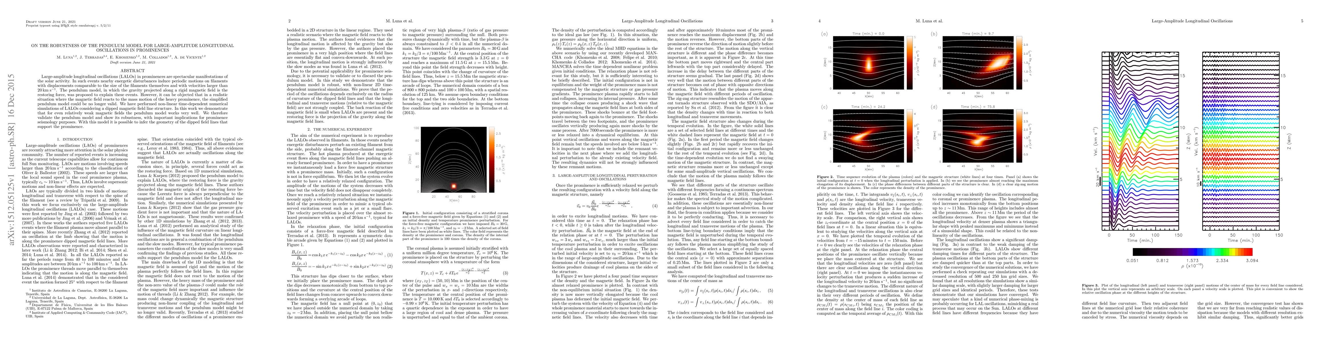 This paper validates the pendulum model for explaining large-amplitude longitudinal oscillations in solar prominences, demonstrating its robustness through non-linear simulations. The study shows that even weak magnetic fields support the pendulum model, thus confirming its applicability for prominence seismology.
