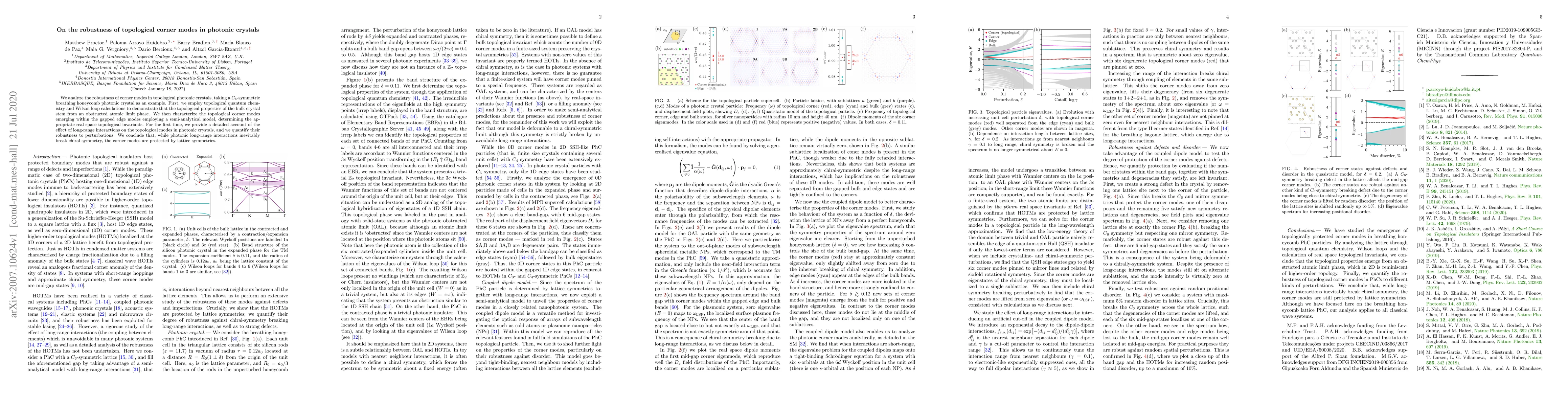 This paper investigates the robustness of topological corner modes in $C_6$-symmetric photonic crystals, employing quantum chemistry and Wilson loop calculations to establish their topological origin. It demonstrates that, despite long-range interactions breaking chiral symmetry, lattice symmetries protect these corner modes from perturbations.