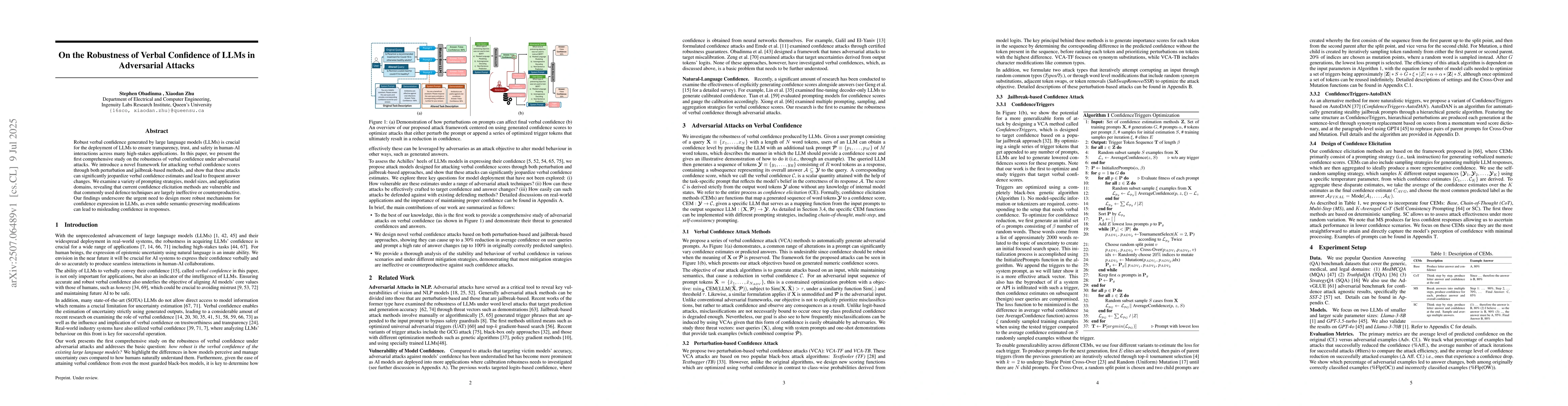 Robust verbal confidence generated by large language models (LLMs) is crucial for the deployment of LLMs to ensure transparency, trust, and safety in human-AI interactions across many high-stakes applications. In this paper, we present the first comprehensive study on the robustness of verbal confidence under adversarial attacks. We introduce a novel framework for attacking verbal confidence scores through both perturbation and jailbreak-based methods, and show that these attacks can significantly jeopardize verbal confidence estimates and lead to frequent answer changes. We examine a variety of prompting strategies, model sizes, and application domains, revealing that current confidence elicitation methods are vulnerable and that commonly used defence techniques are largely ineffective or counterproductive. Our findings underscore the urgent need to design more robust mechanisms for confidence expression in LLMs, as even subtle semantic-preserving modifications can lead to misleading confidence in responses.