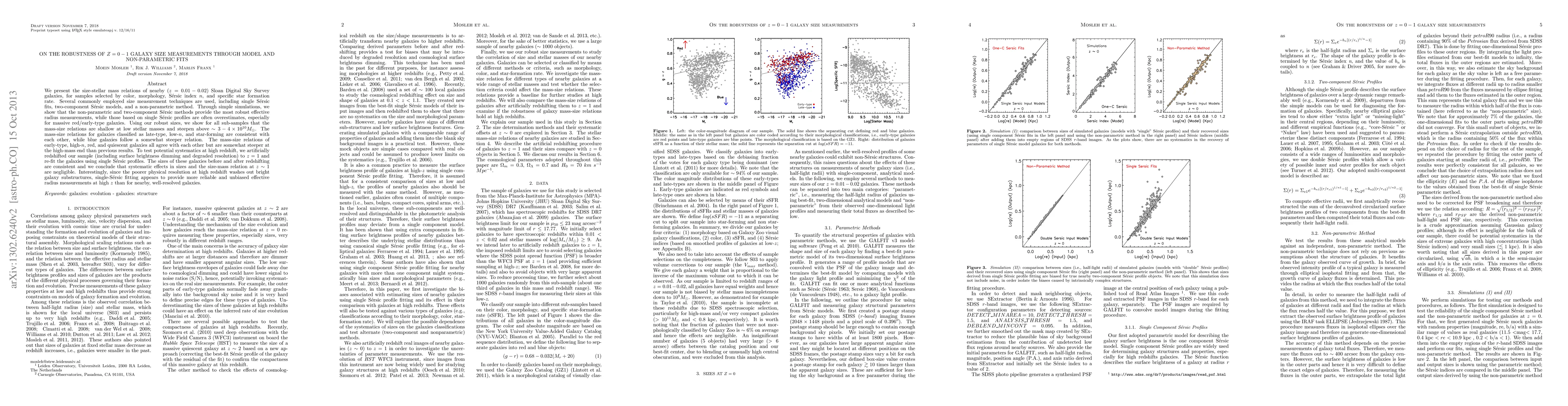 We present the size-stellar mass relations of nearby (z=0.01-0.02) Sloan Digital Sky Survey galaxies, for samples selected by color, morphology, Sersic index n, and specific star formation rate. Several commonly employed size measurement techniques are used, including single Sersic fits, two-component Sersic models, and a non-parametric method. Through simple simulations, we show that the non-parametric and two-component Sersic methods provide the most robust effective radius measurements, while those based on single Sersic profiles are often overestimates, especially for massive red/early-type galaxies. Using our robust sizes, we show for all sub-samples that the mass-size relations are shallow at low stellar masses and steepen above ~ 3-4 x 10^{10}\msun. The mass-size relations for galaxies classified as late-type, low-n, and star-forming are consistent with each other, while blue galaxies follow a somewhat steeper relation. The mass-size relations of early-type, high-n, red, and quiescent galaxies all agree with each other but are somewhat steeper at the high-mass end than previous results. To test potential systematics at high redshift, we artificially redshifted our sample (including surface brightness dimming and degraded resolution) to z=1 and re-fit the galaxies using single Serisc profiles. The sizes of these galaxies before and after redshifting are consistent and we conclude that systematic effects in sizes and the size-mass relation at z ~ 1 are negligible. Interestingly, since the poorer physical resolution at high redshift washes out bright galaxy substructures, single-Sersic fitting appears to provide more reliable and unbiased effective radius measurements at high z than for nearby, well-resolved galaxies.