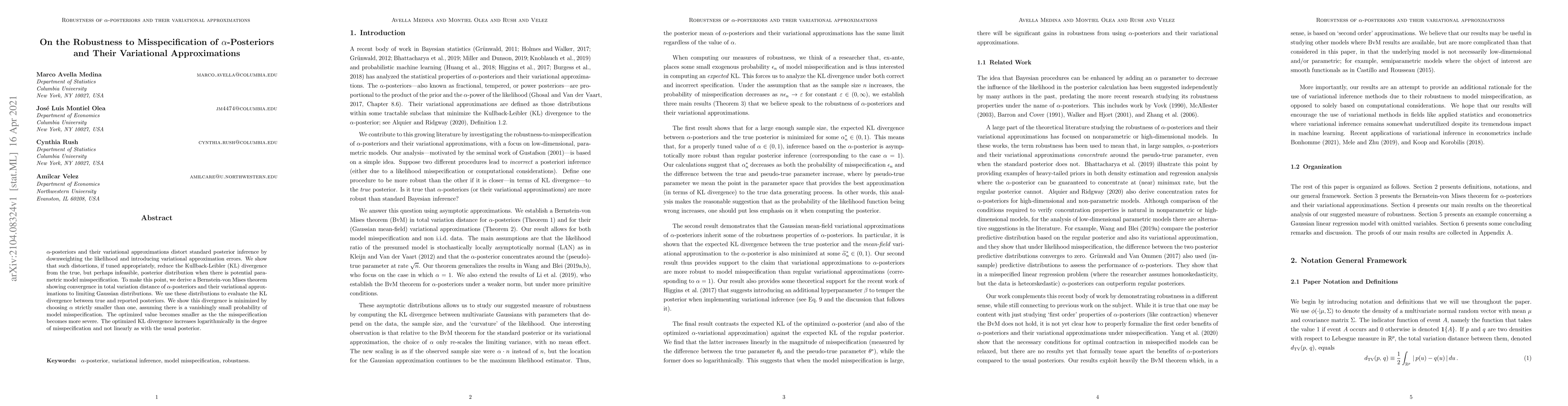 This paper demonstrates that appropriately tuned $\alpha$-posteriors and their variational approximations can reduce Kullback-Leibler divergence from the true posterior in the presence of model misspecification. It shows that minimizing this divergence requires $\alpha$ to be less than one, with the optimized divergence decreasing logarithmically with increasing misspecification.