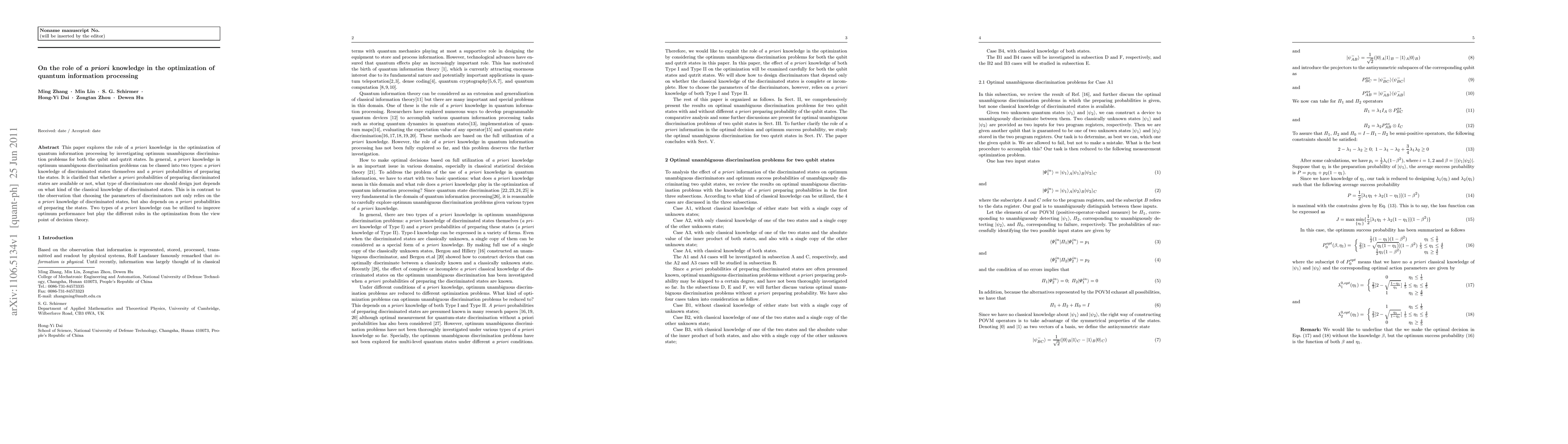 This paper examines how prior knowledge impacts quantum information processing optimization, specifically in unambiguous discrimination problems for qubit and qutrit states. It concludes that prior knowledge about the states versus prior probabilities of preparing states differentially affects discriminator design, with both types enhancing performance but in distinct ways as per decision theory.
