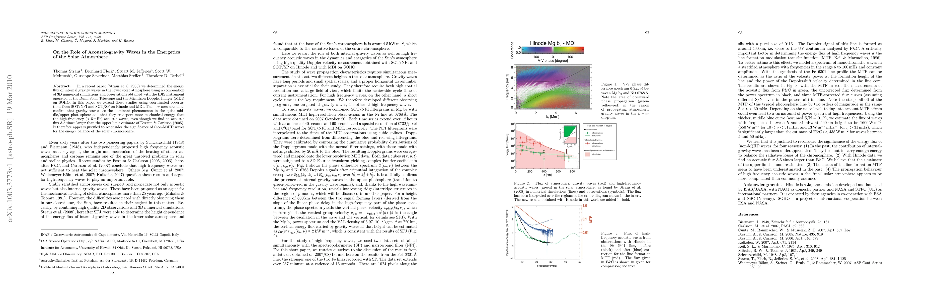 In a recent paper (Straus et al. 2008) we determined the energy flux of internal gravity waves in the lower solar atmosphere using a combination of 3D numerical simulations and observations obtained with the IBIS instrument operated at the Dunn Solar Telescope and the Michelson Doppler Imager (MDI) on SOHO. In this paper we extend these studies using coordinated observations from SOT/NFI and SOT/SP on Hinode and MDI. The new measurements confirm that gravity waves are the dominant phenomenon in the quiet middle/upper photosphere and that they transport more mechanical energy than the high-frequency (> 5mHz) acoustic waves, even though we find an acoustic flux 3-5 times larger than the upper limit estimate of Fossum & Carlsson (2005). It therefore appears justified to reconsider the significance of (non-M)HD waves for the energy balance of the solar chromosphere.