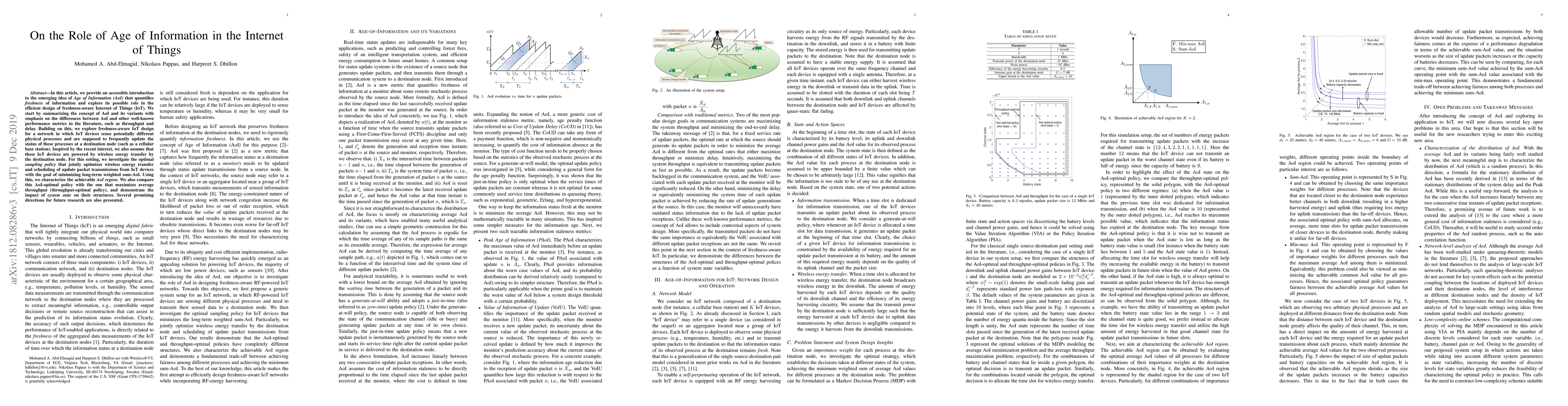 This paper introduces the concept of Age of Information (AoI) to quantify information freshness and explores its application in designing freshness-aware Internet of Things (IoT) systems. It investigates optimal sampling policies to minimize long-term weighted sum-AoI, comparing them with throughput-optimal policies and discussing future research directions.