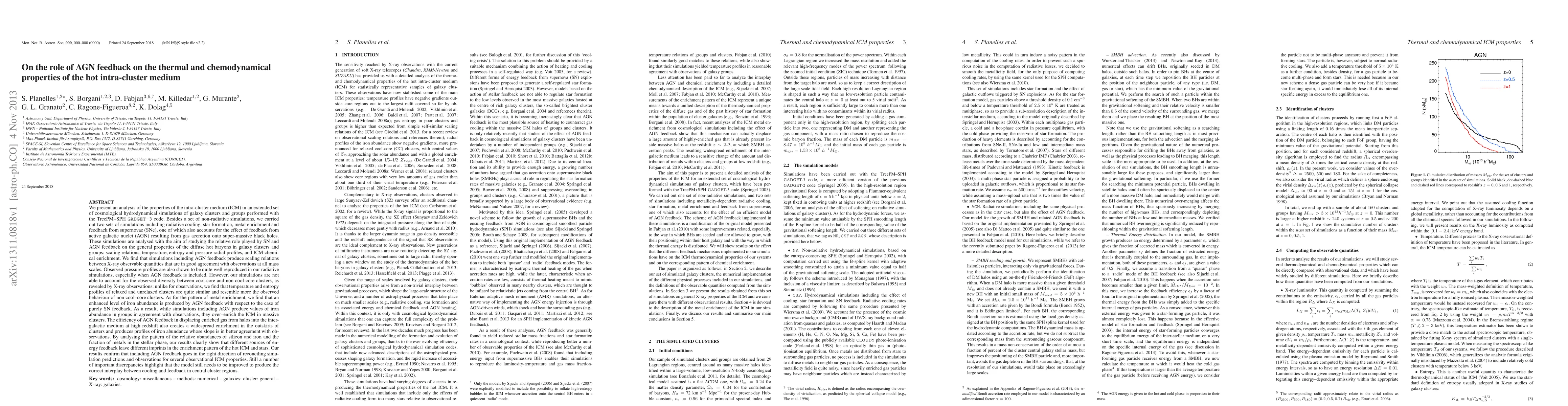This paper analyzes the impact of AGN feedback on the thermal and chemodynamical properties of the intra-cluster medium (ICM) using cosmological simulations. It finds that AGN feedback improves agreement with observed scaling relations but over-enriches massive clusters, while creating widespread iron enrichment in cluster outskirts.