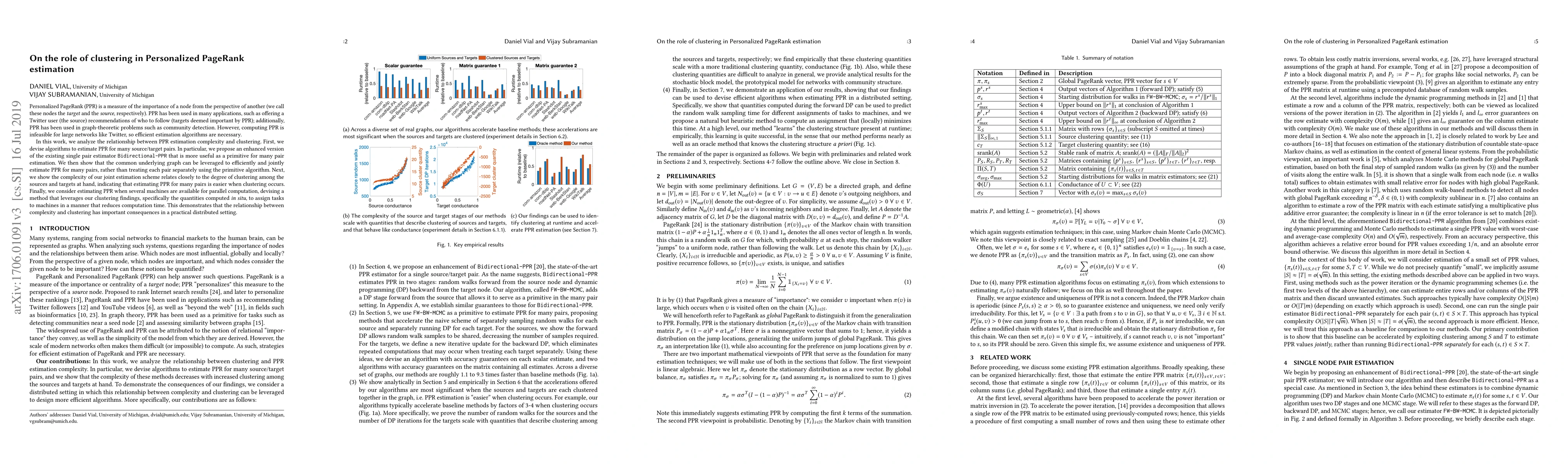 Personalized PageRank (PPR) is a measure of the importance of a node from the perspective of another (we call these nodes the $\textit{target}$ and the $\textit{source}$, respectively). PPR has been used in many applications, such as offering a Twitter user (the source) recommendations of who to follow (targets deemed important by PPR); additionally, PPR has been used in graph-theoretic problems such as community detection. However, computing PPR is infeasible for large networks like Twitter, so efficient estimation algorithms are necessary. In this work, we analyze the relationship between PPR estimation complexity and clustering. First, we devise algorithms to estimate PPR for many source/target pairs. In particular, we propose an enhanced version of the existing single pair estimator $\texttt{Bidirectional-PPR}$ that is more useful as a primitive for many pair estimation. We then show that the common underlying graph can be leveraged to efficiently and jointly estimate PPR for many pairs, rather than treating each pair separately using the primitive algorithm. Next, we show the complexity of our joint estimation scheme relates closely to the degree of clustering among the sources and targets at hand, indicating that estimating PPR for many pairs is easier when clustering occurs. Finally, we consider estimating PPR when several machines are available for parallel computation, devising a method that leverages our clustering findings, specifically the quantities computed $\textit{in situ}$, to assign tasks to machines in a manner that reduces computation time. This demonstrates that the relationship between complexity and clustering has important consequences in a practical distributed setting.