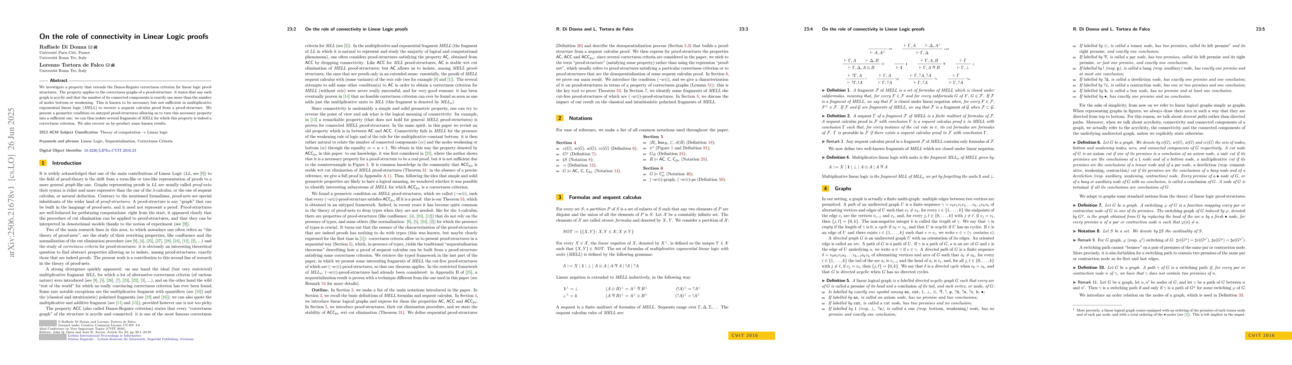 We investigate a property that extends the Danos-Regnier correctness criterion for linear logic proof-structures. The property applies to the correctness graphs of a proof-structure: it states that any such graph is acyclic and that the number of its connected components is exactly one more than the number of nodes bottom or weakening. This is known to be necessary but not sufficient in multiplicative exponential linear logic (MELL) to recover a sequent calculus proof from a proof-structure. We present a geometric condition on untyped proof-structures allowing us to turn this necessary property into a sufficient one: we can thus isolate several fragments of MELL for which this property is indeed a correctness criterion. We also recover as by-product some known results.