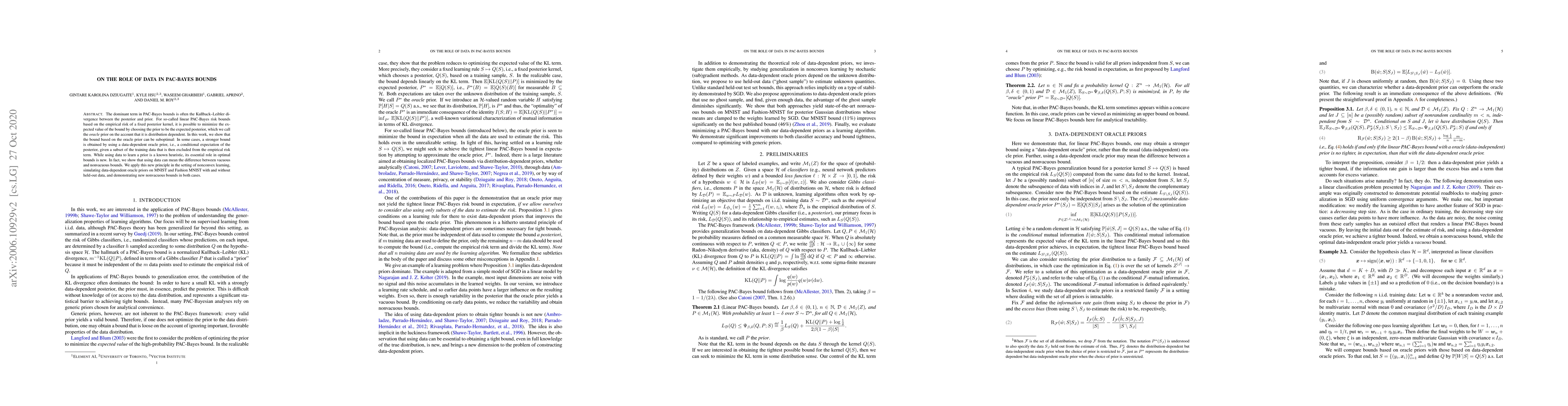 This paper explores how data influences PAC-Bayes bounds, demonstrating that a data-dependent prior can yield stronger bounds compared to an oracle prior. It shows that using data to determine the prior can prevent bounds from becoming vacuous, and applies this principle in nonconvex learning contexts, achieving nonvacuous bounds on MNIST and Fashion MNIST datasets.