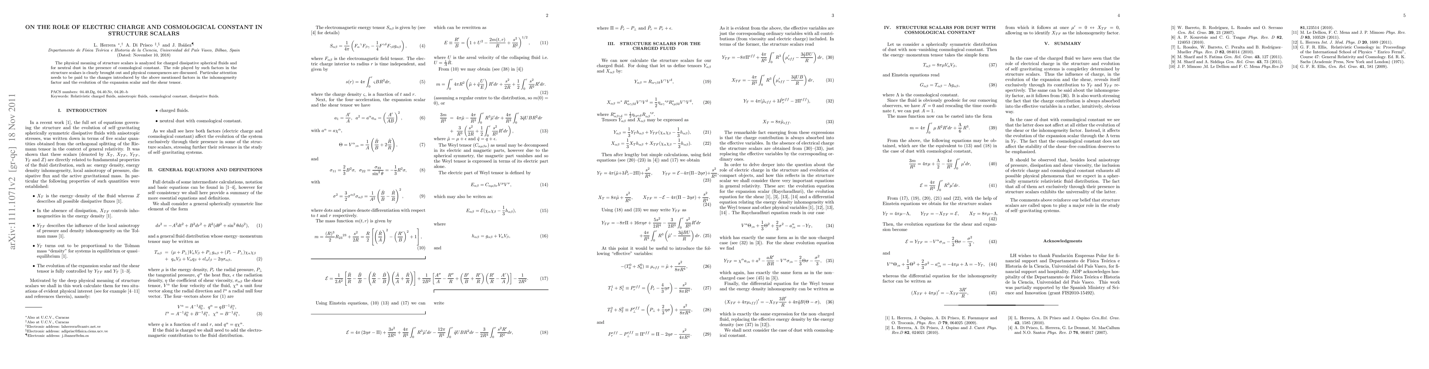 The physical meaning of structure scalars is analyzed for charged dissipative spherical fluids and for neutral dust in the presence of cosmological constant. The role played by such factors in the structure scalars is clearly brought out and physical consequences are discussed. Particular attention needs to be paid to the changes introduced by the above mentioned factors in the inhomogeneity factor and the evolution of the expansion scalar and the shear tensor.