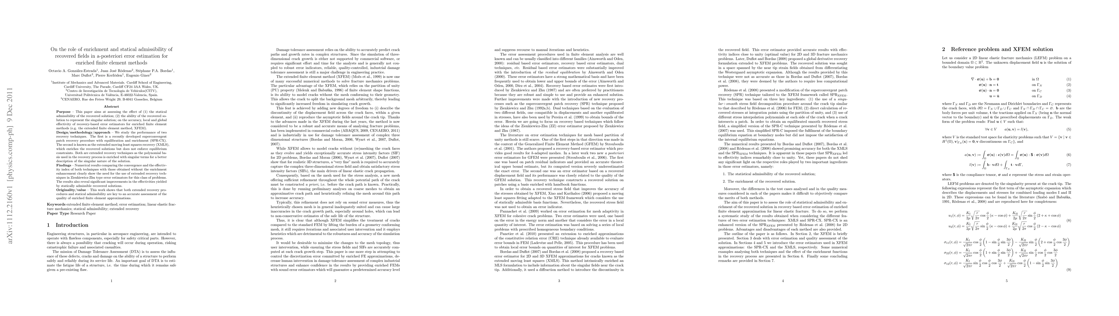 This paper assesses the impact of enriched finite element methods on error estimation for XFEM, highlighting the importance of statical admissibility and recovery techniques in achieving accurate approximations.