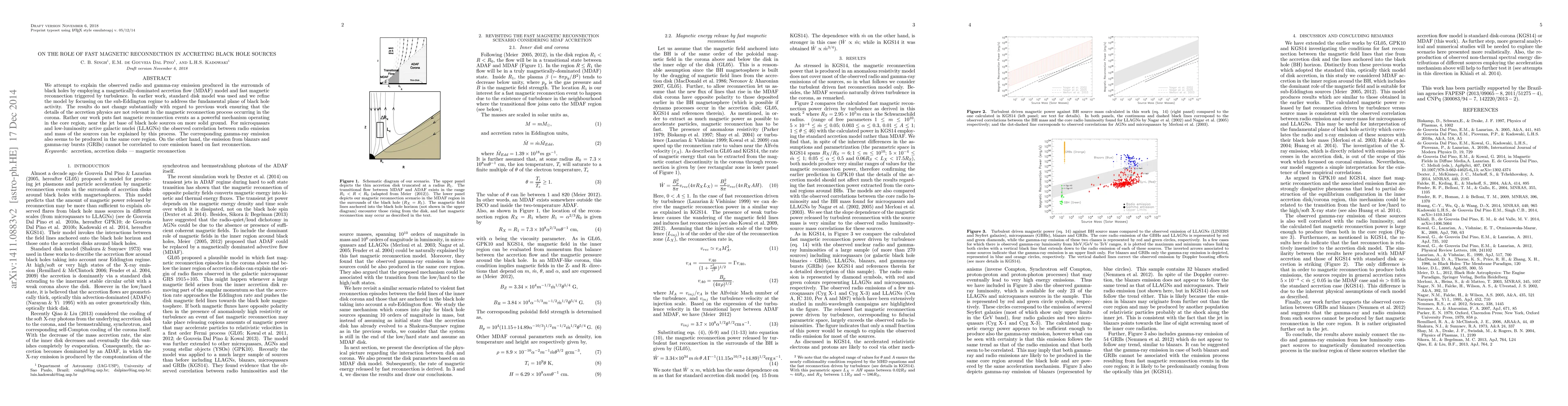 We attempt to explain the observed radio and gamma-ray emission produced in the surrounds of black holes by employing a magnetically-dominated accretion flow (MDAF) model and fast magnetic reconnection triggered by turbulence. In earlier work, standard disk model was used and we refine the model by focussing on the sub-Eddington regime to address the fundamental plane of black hole activity. The results do not change substantially with regard to previous work ensuring that the details of the accretion physics are not relevant in the magnetic reconnection process occurring in the corona. Rather our work puts fast magnetic reconnection events as a powerful mechanism operating in the core region, near the jet base of black hole sources on more solid ground. For microquasars and low-luminosity active galactic nuclei (LLAGNs) the observed correlation between radio emission and mass of the sources can be explained by this process. The corresponding gamma-ray emission also seems to be produced in the same core region. On the other hand, the emission from blazars and gamma-ray bursts (GRBs) cannot be correlated to core emission based on fast reconnection.