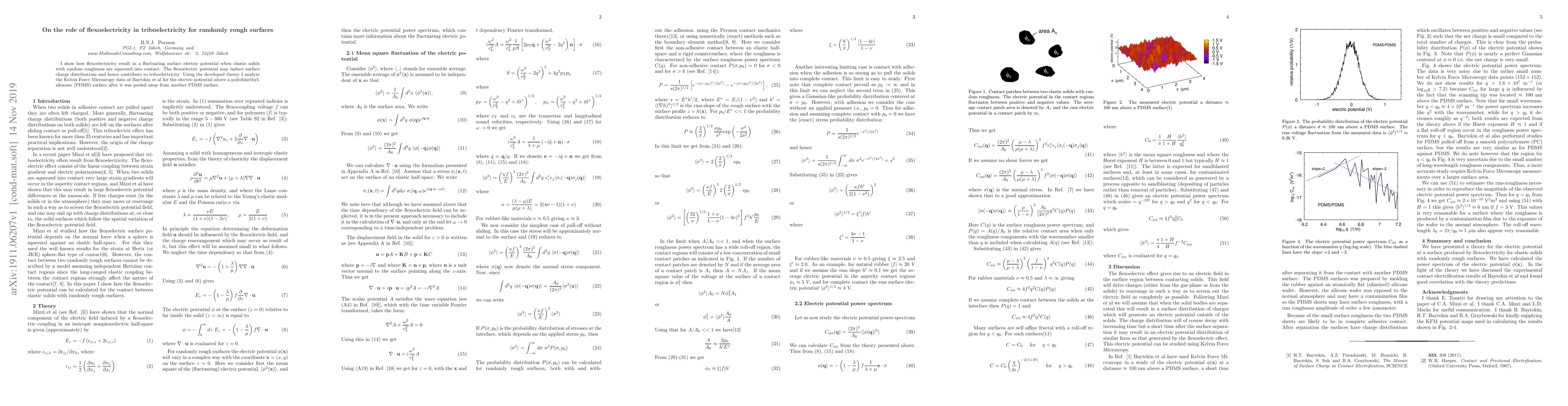 This paper explores how flexoelectricity generates a fluctuating surface electric potential in elastic solids with random roughness, potentially inducing surface charge distributions that contribute to triboelectricity. The developed theory is applied to analyze Kelvin Force Microscopy data to understand the electric potential on a PDMS surface after separation.