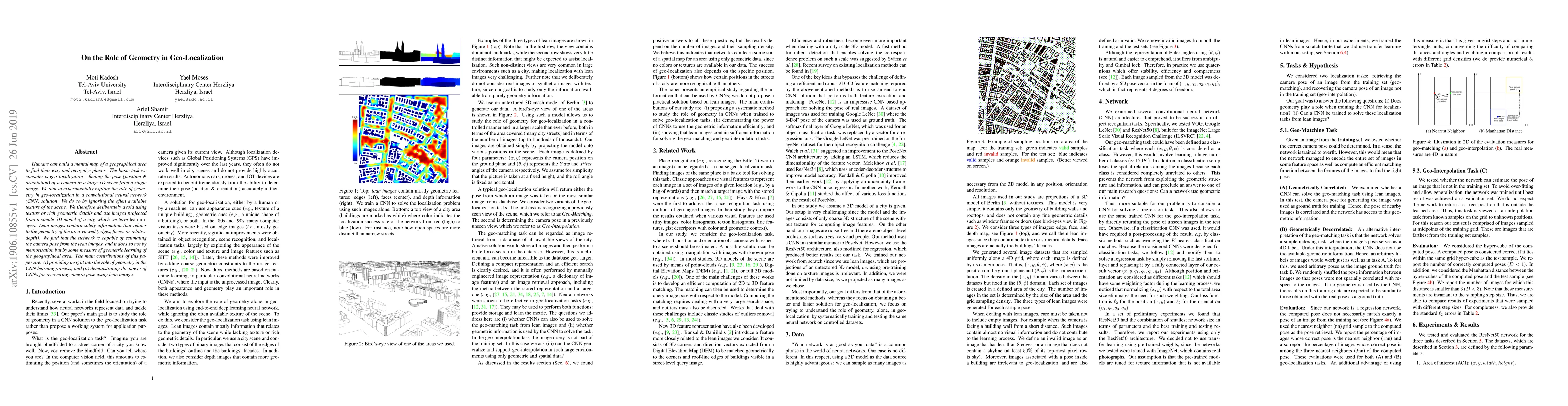 Humans can build a mental map of a geographical area to find their way and recognize places. The basic task we consider is geo-localization - finding the pose (position & orientation) of a camera in a large 3D scene from a single image. We aim to experimentally explore the role of geometry in geo-localization in a convolutional neural network (CNN) solution. We do so by ignoring the often available texture of the scene. We therefore deliberately avoid using texture or rich geometric details and use images projected from a simple 3D model of a city, which we term lean images. Lean images contain solely information that relates to the geometry of the area viewed (edges, faces, or relative depth). We find that the network is capable of estimating the camera pose from the lean images, and it does so not by memorization but by some measure of geometric learning of the geographical area. The main contributions of this paper are: (i) providing insight into the role of geometry in the CNN learning process; and (ii) demonstrating the power of CNNs for recovering camera pose using lean images.