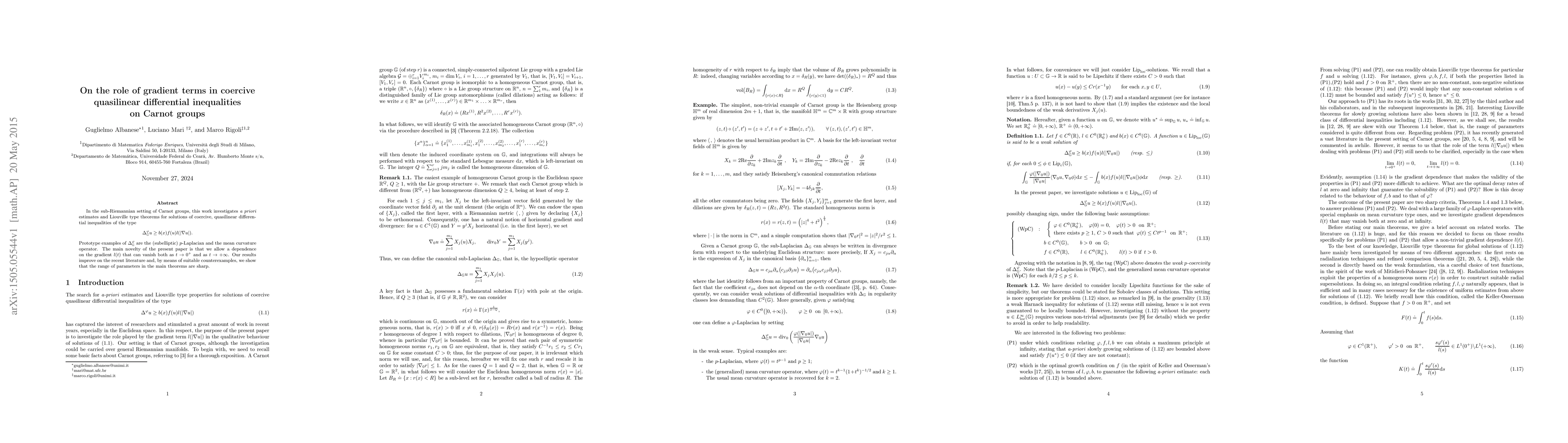 This paper explores a-priori estimates and Liouville theorems for quasilinear coercive differential inequalities on Carnot groups, allowing gradient terms to vanish at both low and high gradients. The study improves existing literature and demonstrates the sharpness of parameter ranges through counterexamples.