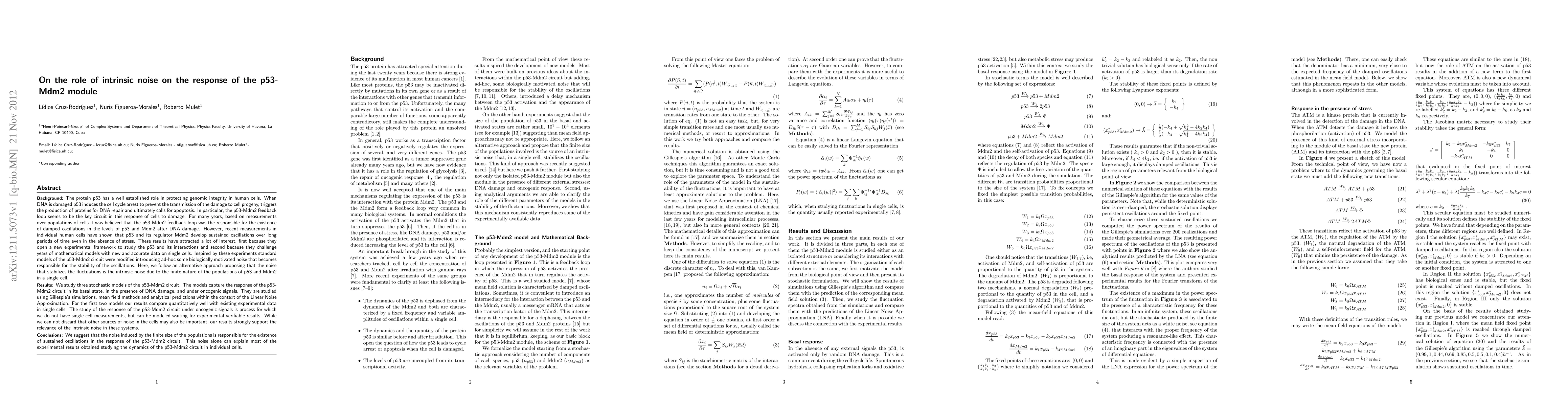 The protein p53 has a well established role in protecting genomic integrity in human cells. When DNA is damaged p53 induces the cell cycle arrest to prevent the transmission of the damage to cell progeny, triggers the production of proteins for DNA repair and ultimately calls for apoptosis. In particular, the p53-Mdm2 feedback loop seems to be the key circuit in this response of cells to damage. For many years, based on measurements over populations of cells it was believed that the p53-Mdm2 feedback loop was the responsible for the existence of damped oscillations in the levels of p53 and Mdm2 after DNA damage. However, recent measurements in individual human cells have shown that p53 and its regulator Mdm2 develop sustained oscillations over long periods of time even in the absence of stress. These results have attracted a lot of interest, first because they open a new experimental framework to study the p53 and its interactions and second because they challenge years of mathematical models with new and accurate data on single cells. Inspired by these experiments standard models of the p53-Mdm2 circuit were modified introducing ad-hoc some biologically motivated noise that becomes responsible for the stability of the oscillations. Here, we follow an alternative approach proposing that the noise that stabilizes the fluctuations is the intrinsic noise due to the finite nature of the populations of p53 and Mdm2 in a single cell.