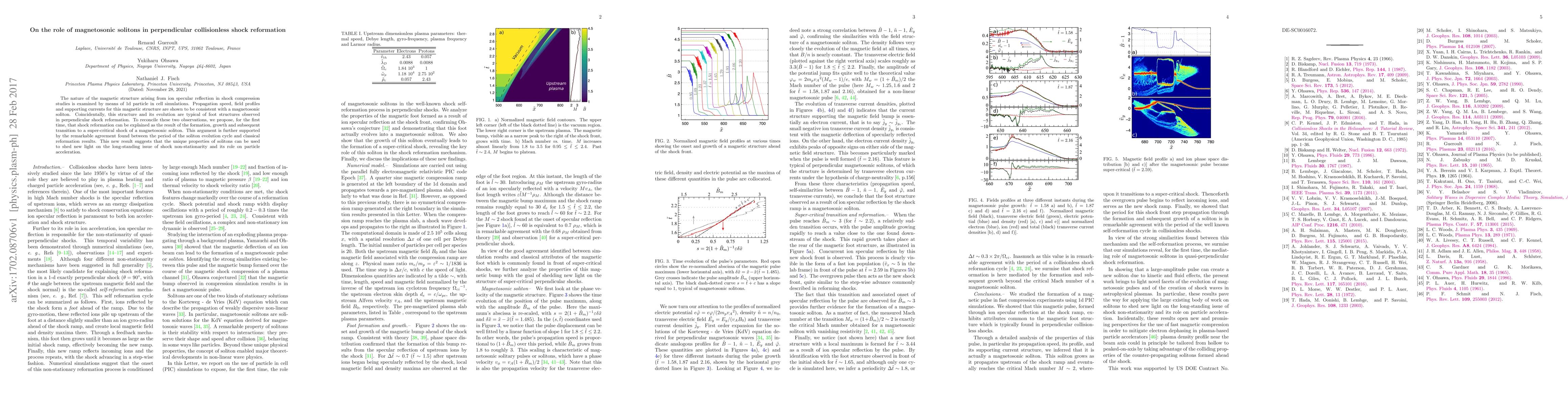 The nature of the magnetic structure arising from ion specular reflection in shock compression studies is examined by means of 1d particle in cell simulations. Propagation speed, field profiles and supporting currents for this magnetic structure are shown to be consistent with a magnetosonic soliton. Coincidentally, this structure and its evolution are typical of foot structures observed in perpendicular shock reformation. To reconcile these two observations, we propose, for the first time, that shock reformation can be explained as the result of the formation, growth and subsequent transition to a super-critical shock of a magnetosonic soliton. This argument is further supported by the remarkable agreement found between the period of the soliton evolution cycle and classical reformation results. This new result suggests that the unique properties of solitons can be used to shed new light on the long-standing issue of shock non-stationarity and its role on particle acceleration.