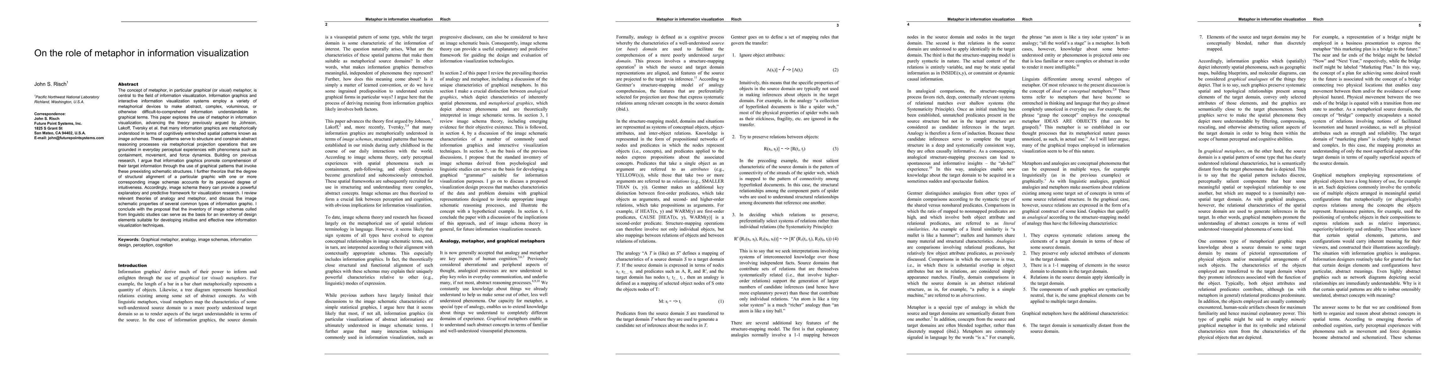 This paper explores how metaphor, particularly visual metaphor, enhances information visualization by making abstract data comprehensible through cognitively entrenched spatial patterns called image schemas. It proposes that the intuitiveness of information graphics is linked to their alignment with these image schemas, suggesting that image schema theory can guide the development of more effective visualization techniques.