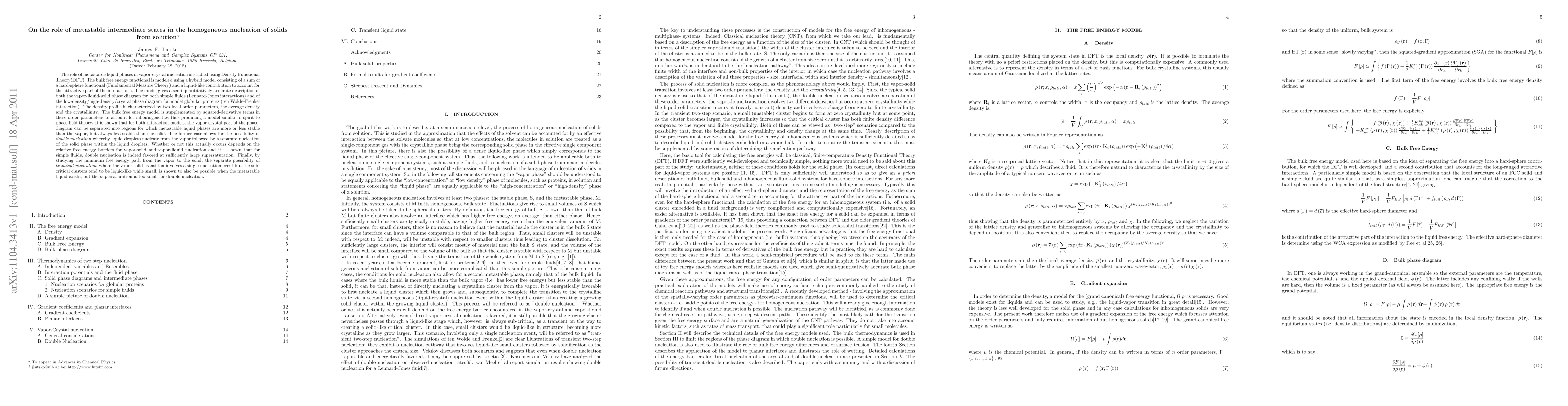 The role of metastable liquid phases in vapor-crystal nucleation is studied using Density Functional Theory(DFT). The model gives a semi-quantitatively accurate description of both the vapor-liquid-solid phase diagram for both simple fluids (Lennard-Jones interactions) and of the low-density/high-density/crystal phase diagram for model globular proteins (ten Wolde-Frenkel interaction). The density profile is characterized by two local order parameters, the average density and the crystallinity. The bulk free energy model is supplemented by squared-derivative terms in these order parameters to account for inhomogeneities thus producing a model similar in spirit to phase-field theory. It is shown that for both interaction models, the vapor-crystal part of the phase-diagram can be separated into regions for which metastable liquid phases are more or less stable than the vapor, but always less stable than the solid. The former case allows for the possibility of \emph{double nucleation} whereby liquid droplets nucleate from the vapor followed by a separate nucleation of the solid phase within the liquid droplets. Whether or not this actually occurs depends on the relative free energy barriers for vapor-solid and vapor-liquid nucleation and it is shown that for simple fluids, double nucleation is indeed favored at sufficiently large supersaturation. Finally, by studying the minimum free energy path from the vapor to the solid, the separate possibility of \emph{transient nucleation}, where the vapor-solid transition involves a single nucleation event but the sub-critical clusters tend to be liquid-like while small, is shown to also be possible when the metastable liquid exists, but the supersaturation is too small for double nucleation.