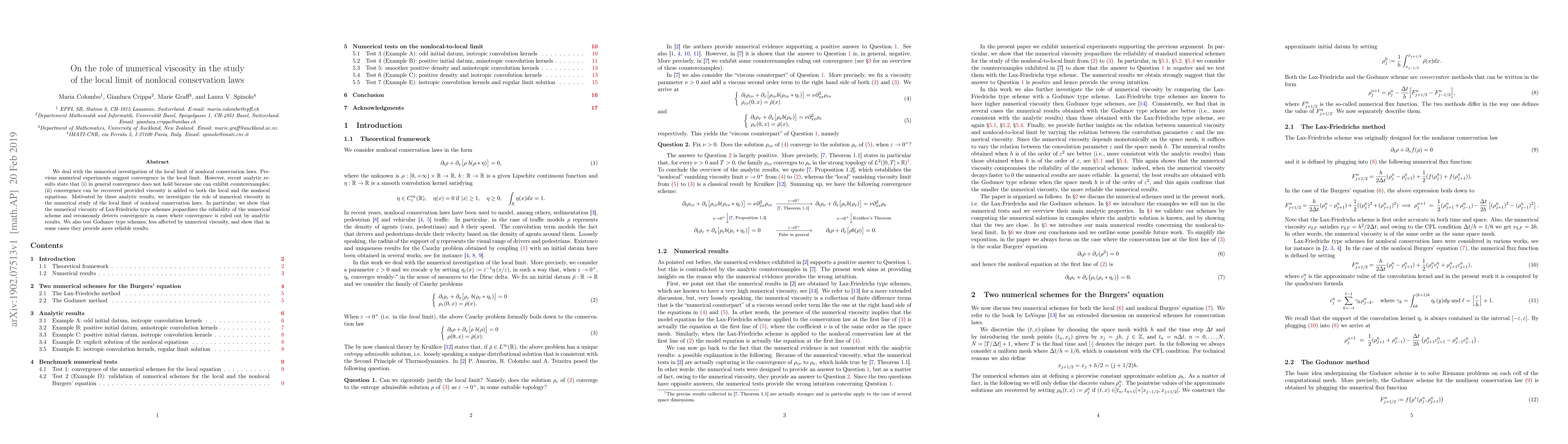 This paper investigates the role of numerical viscosity in studying the local limit of nonlocal conservation laws, finding that Lax-Friedrichs schemes falsely indicate convergence due to their viscosity, while Godunov schemes offer more reliable results in some cases.