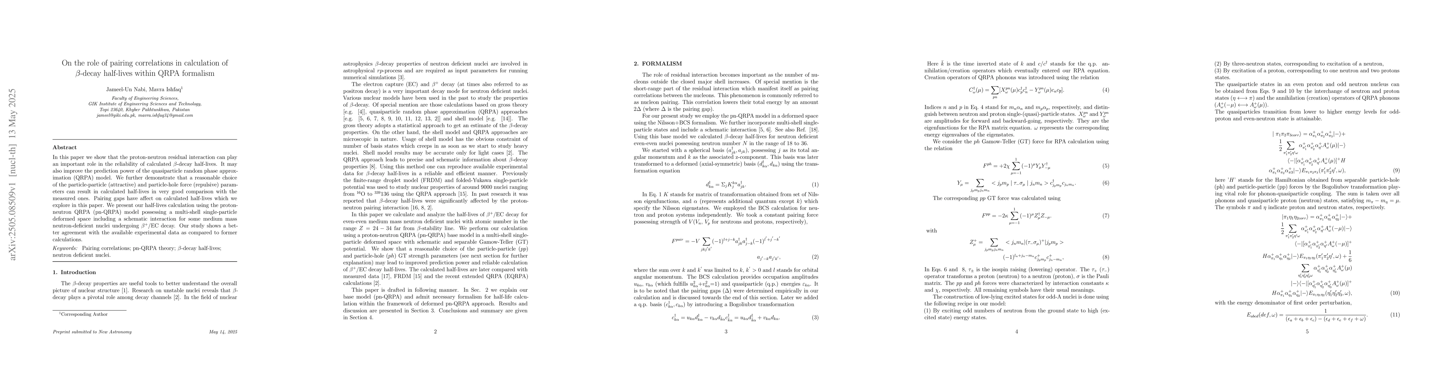 This work distinguishes itself by explicitly analyzing the role of pairing correlations and demonstrating their impact on half-life predictions within the QRPA formalism.