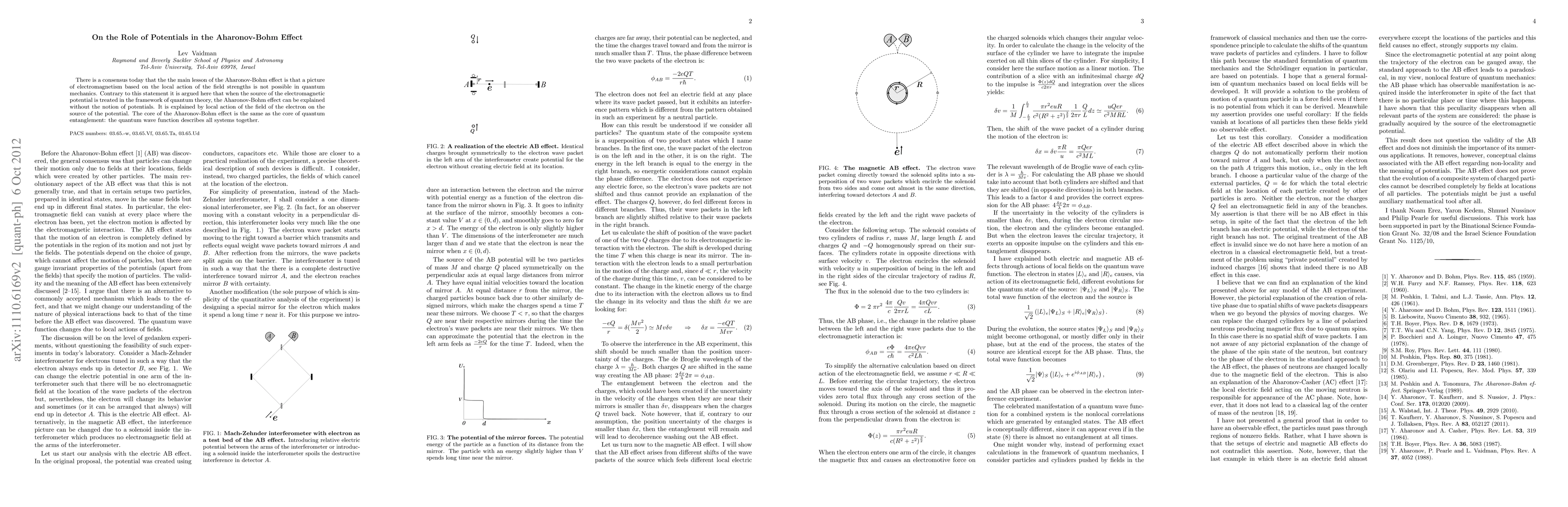 This paper argues that the Aharonov-Bohm effect can be explained by the local action of the electron field on the potential source, negating the need for electromagnetic potentials, and likens its core to quantum entanglement, where the quantum wave function describes interconnected systems.