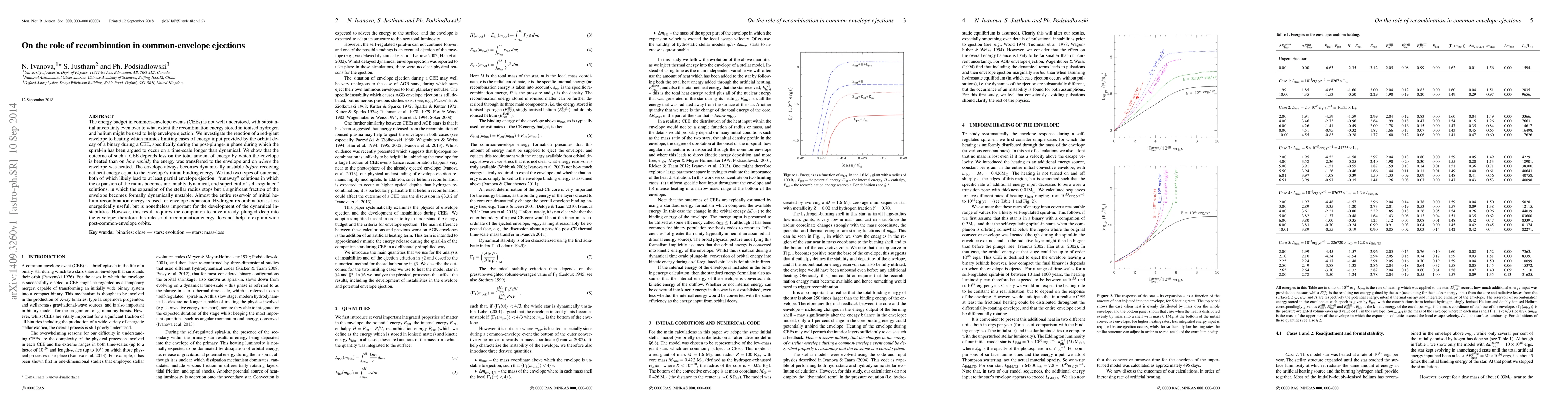 This paper investigates the role of recombination energy in common-envelope ejections, finding that helium recombination energy significantly aids envelope expansion, while hydrogen recombination contributes to dynamical instabilities. The study concludes that recombination energy is crucial but does not explain wide post-common-envelope orbits.