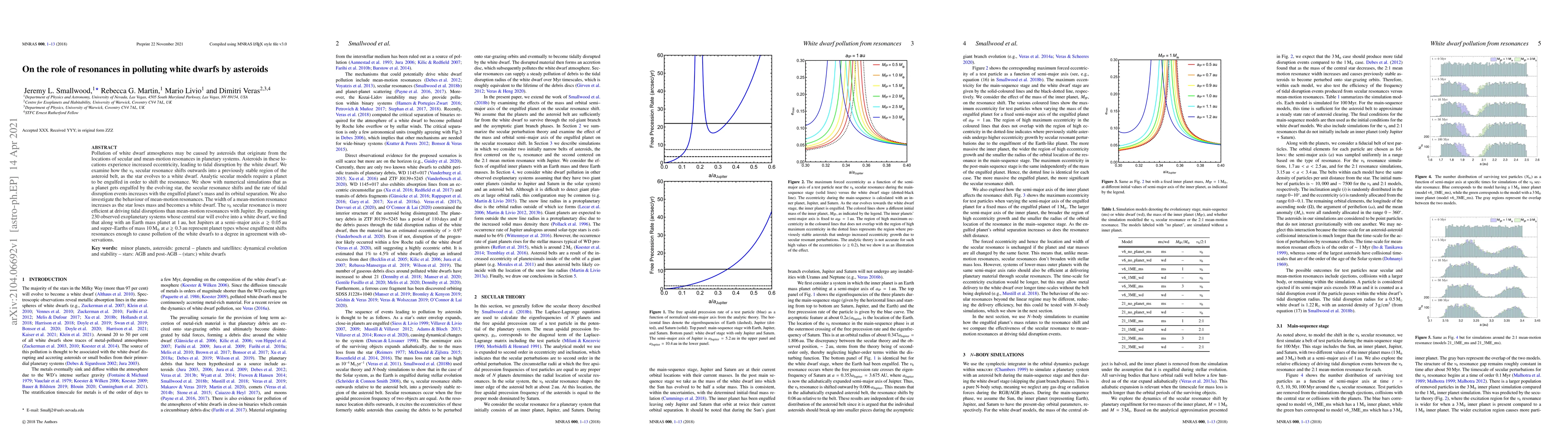 This paper investigates the role of resonances in polluting white dwarfs by asteroids, showing that secular and mean-motion resonances can lead to increased asteroid disruption. Numerical simulations reveal that the engulfment of a planet by a star evolving into a white dwarf shifts the $\nu_6$ secular resonance and enhances tidal disruption rates, particularly for massive planets.