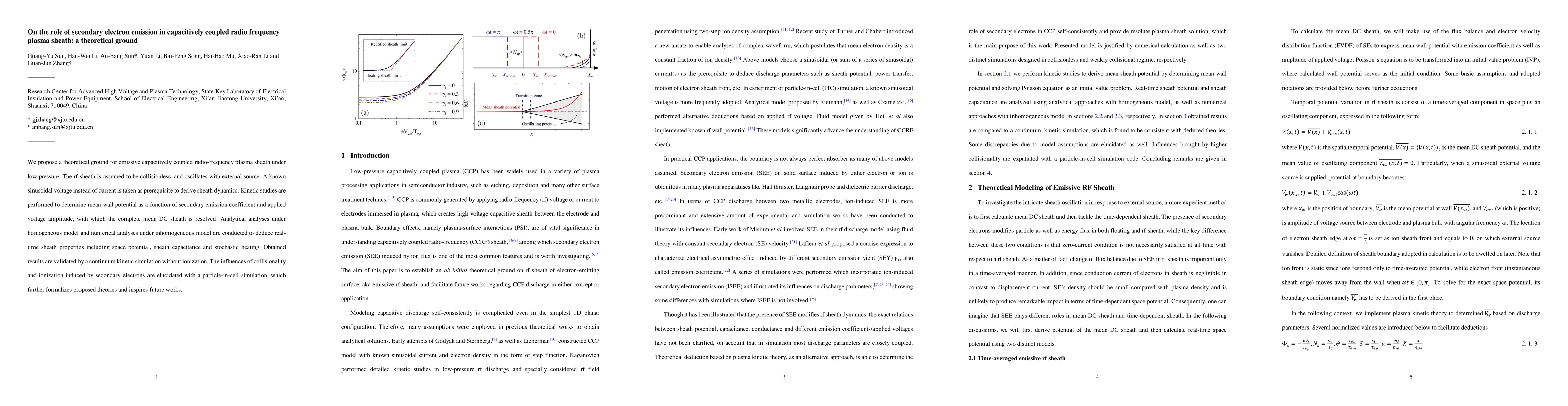 This paper develops a theoretical framework for understanding the dynamics of capacitively coupled radio-frequency plasma sheaths, focusing on secondary electron emission. The study combines analytical and numerical methods to analyze sheath properties, validated by kinetic simulations and particle-in-cell modeling.