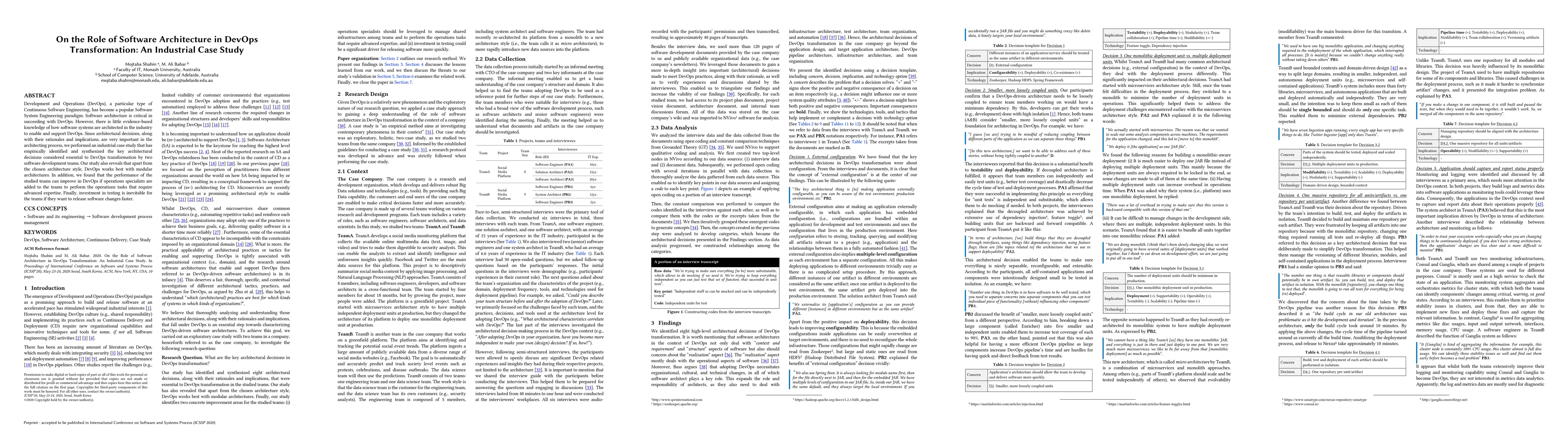 This paper investigates the role of software architecture in DevOps transformation through an industrial case study of two software development teams. The study reveals that modular architectures and the inclusion of operations specialists significantly enhance DevOps performance, while investment in testing is crucial for faster software release.