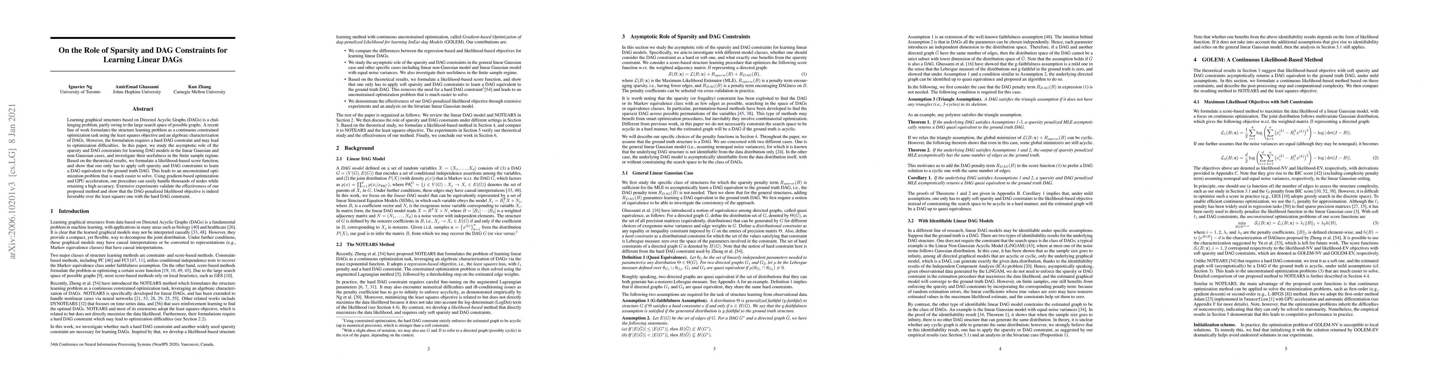 This paper explores the impact of sparsity and DAG constraints on learning linear DAG models, demonstrating that soft constraints can effectively replace hard constraints, leading to an easier optimization problem. The proposed method, validated through experiments, shows improved performance over traditional least squares approaches.