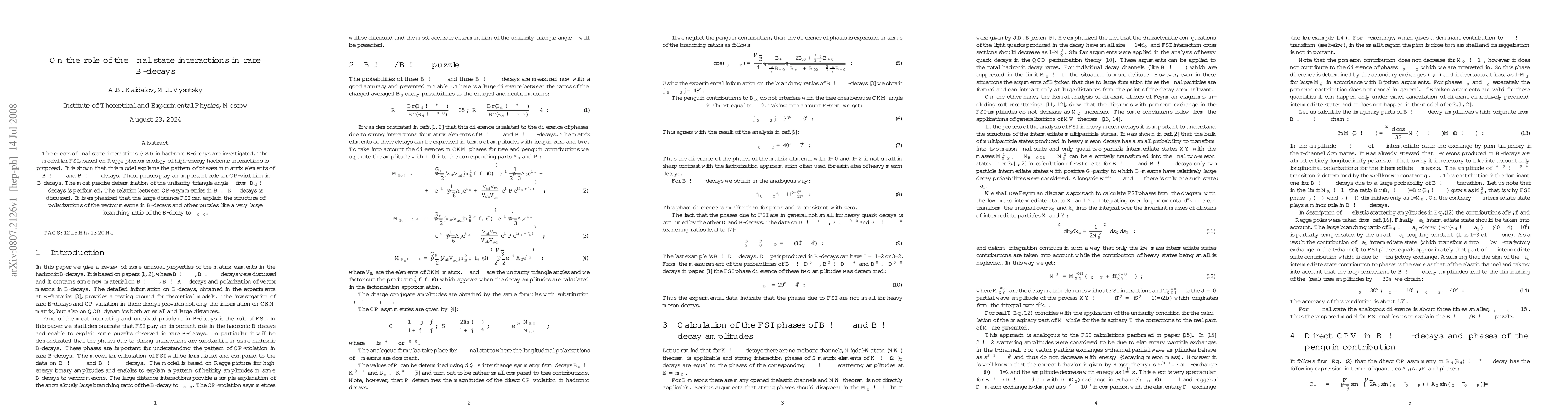 This paper investigates the impact of final state interactions (FSI) in rare B-decays, proposing a Regge phenomenology-based model that explains the phase patterns in $B\to\pi\pi$ and $B\to\rho\rho$ decays, crucial for CP-violation. It also provides a precise determination of the unitarity triangle angle $\alpha$ from $B_d\to \rho\pi$ decays.