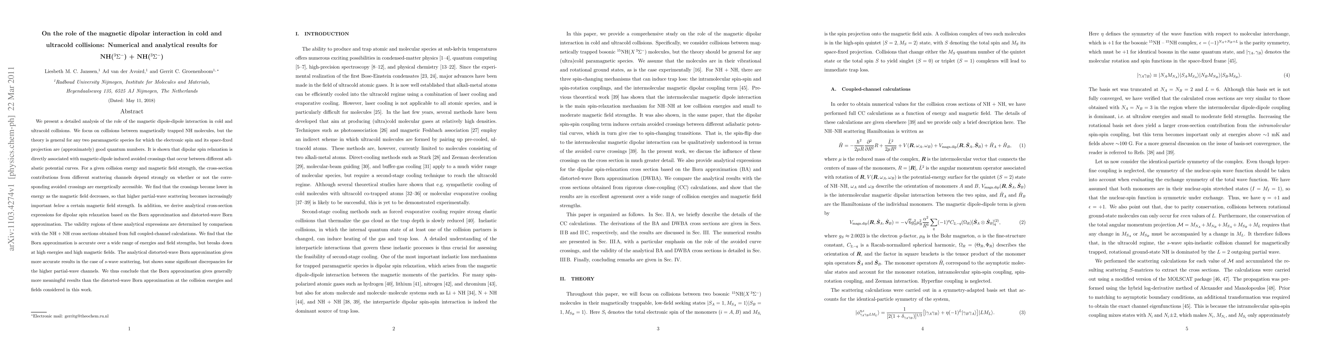 This paper explores the magnetic dipolar interaction's role in cold and ultracold collisions of NH molecules, demonstrating that dipolar spin relaxation is linked to magnetic-dipole induced avoided crossings. The analysis shows that the accessibility of these crossings significantly influences scattering cross-sections, with higher partial-wave scattering becoming more relevant at lower magnetic fields. The Born approximation provides accurate cross-section expressions over a wide range, while the distorted-wave Born approximation is more precise for s-wave but less so for higher partial waves.