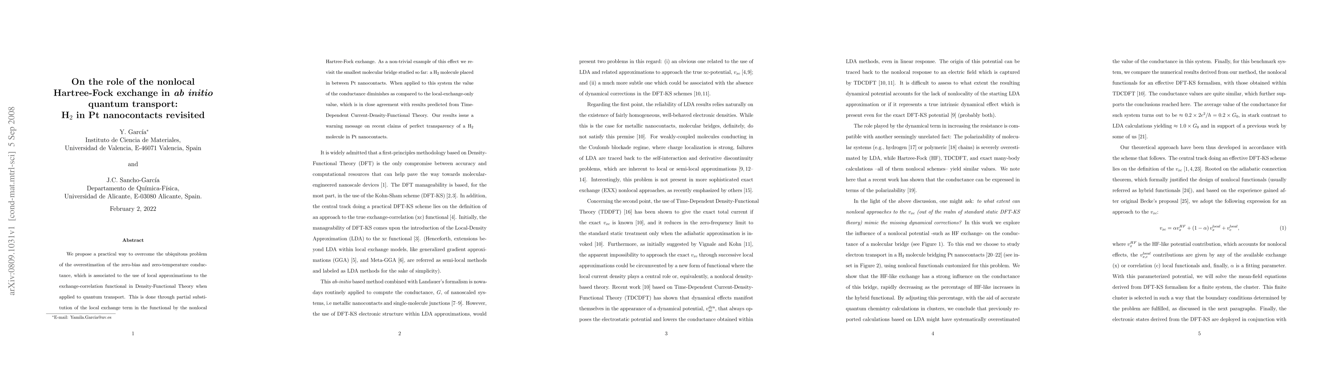 Researchers develop a new method to improve accuracy in quantum transport simulations, finding that nonlocal Hartree-Fock exchange reduces conductance for hydrogen in platinum nanocontacts.
