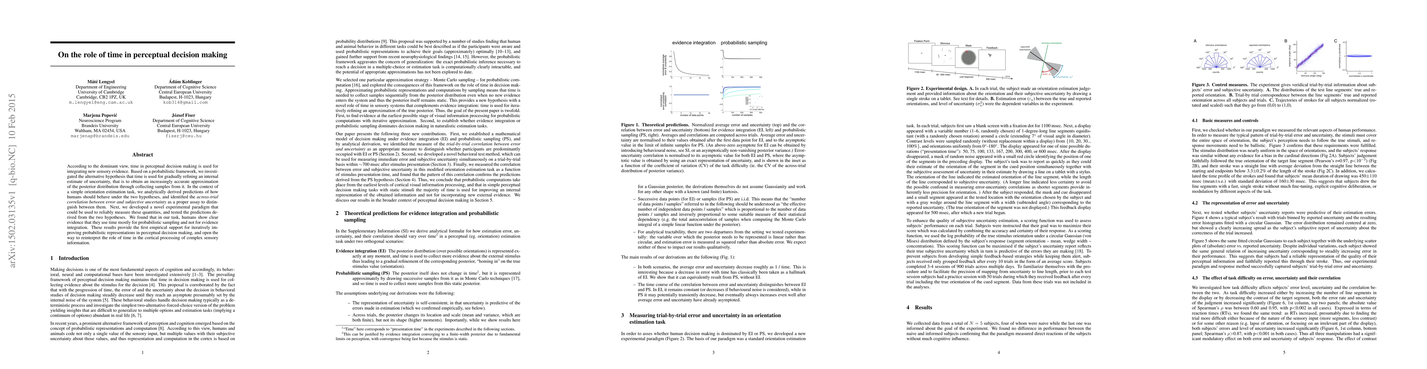 This paper investigates whether time in perceptual decision making is used for integrating sensory evidence or for refining internal uncertainty estimates. Experimental results support the latter, showing that humans use time primarily for probabilistic sampling rather than evidence integration, suggesting a new perspective on cortical processing of sensory information.