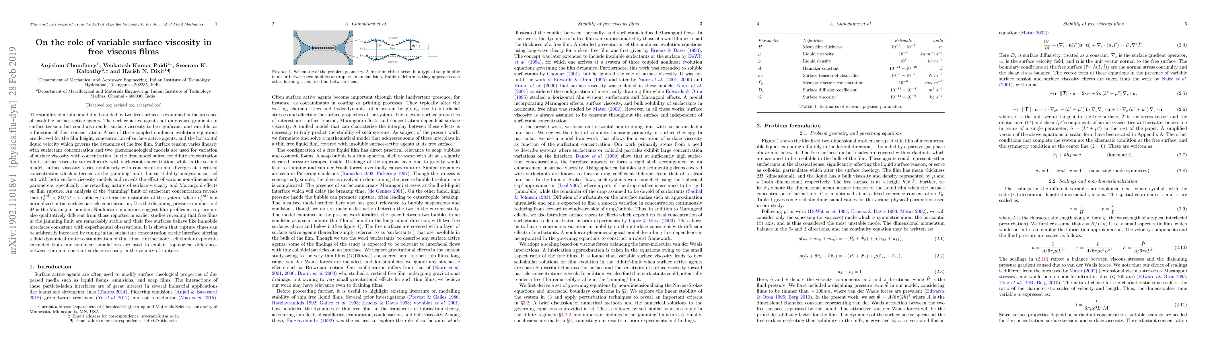 This paper investigates the stability of thin liquid films influenced by variable surface viscosity due to insoluble surface active agents, deriving coupled nonlinear evolution equations. The study finds that high surface particle concentration leads to a jamming limit where the film remains remarkably stable, contrasting earlier rupture models.