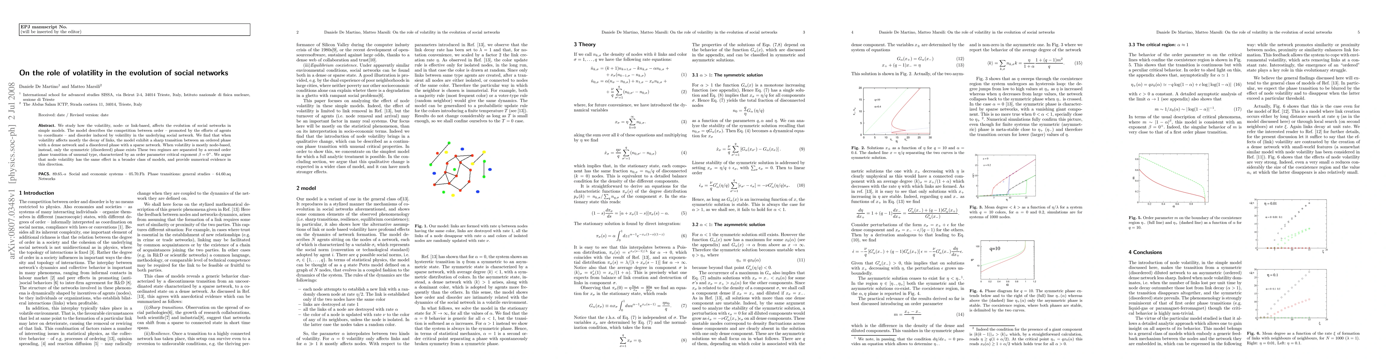 We study how the volatility, node- or link-based, affects the evolution of social networks in simple models. The model describes the competition between order -- promoted by the efforts of agents to coordinate -- and disorder induced by volatility in the underlying social network. We find that when volatility affects mostly the decay of links, the model exhibit a sharp transition between an ordered phase with a dense network and a disordered phase with a sparse network. When volatility is mostly node-based, instead, only the symmetric (disordered) phase exists These two regimes are separated by a second order phase transition of unusual type, characterized by an order parameter critical exponent $\beta=0^+$. We argue that node volatility has the same effect in a broader class of models, and provide numerical evidence in this direction.