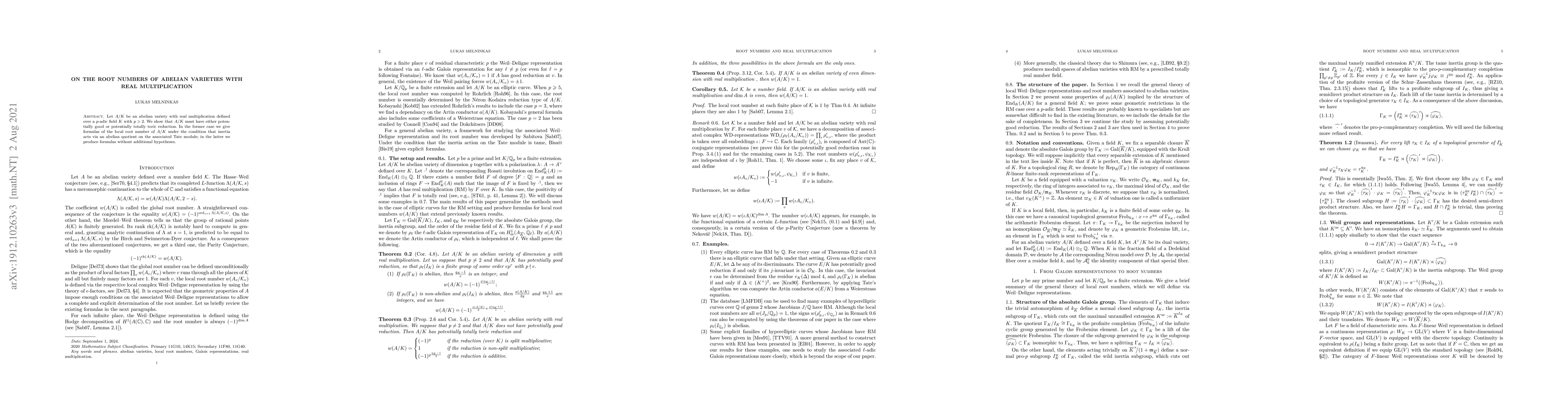 Let $A/K$ be an abelian variety with real multiplication defined over a $p$-adic field $K$ with $p>2$. We show that $A/K$ must have either potentially good or potentially totally toric reduction. In the former case we give formulas of the local root number of $A/K$ under the condition that inertia acts via an abelian quotient on the associated Tate module; in the latter we produce formulas without additional hypotheses.