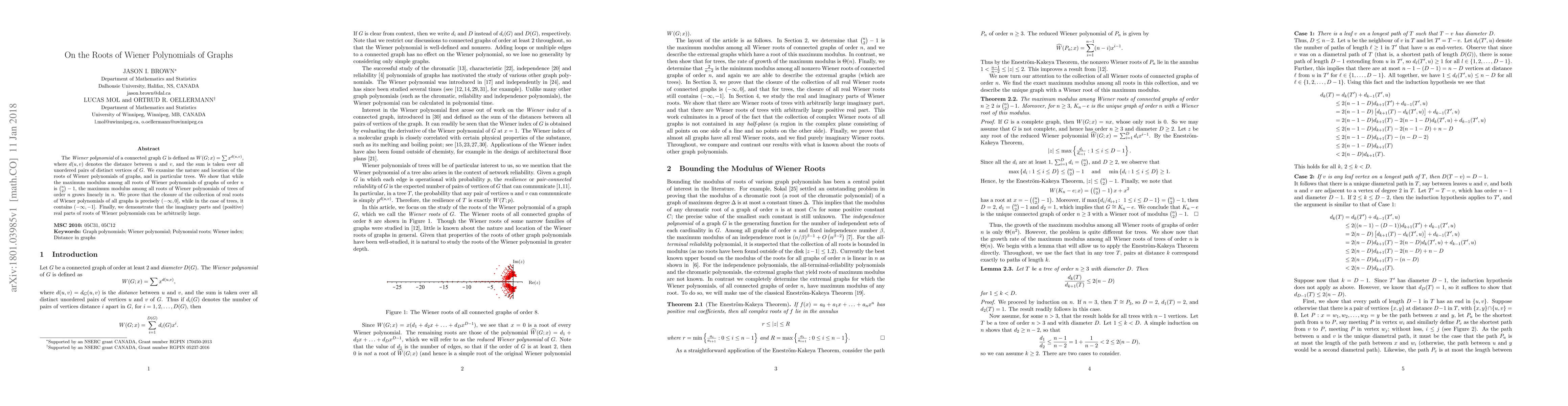 This paper investigates the roots of Wiener polynomials of graphs, particularly focusing on trees. It finds that the maximum modulus of roots for general graphs is $\binom{n}{2}-1$, but for trees it grows linearly with $n$. It also proves that the closure of real roots for all graphs is $(-\infty, 0]$, and for trees, it extends to $(-\infty, -1]$.