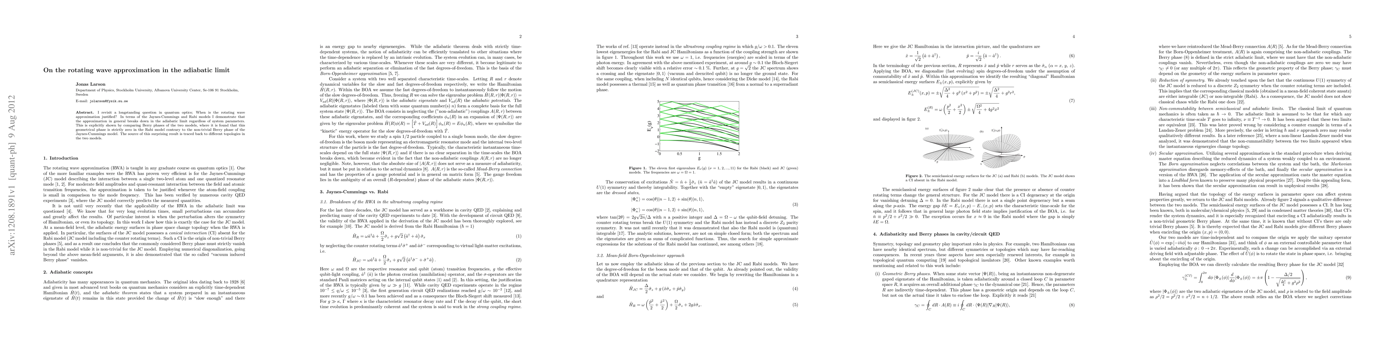 This paper examines the rotating wave approximation in quantum optics, showing that it fails in the adiabatic limit for the Jaynes-Cummings and Rabi models due to differing geometrical phases and topological structures, with the Rabi model yielding a strictly zero Berry phase.