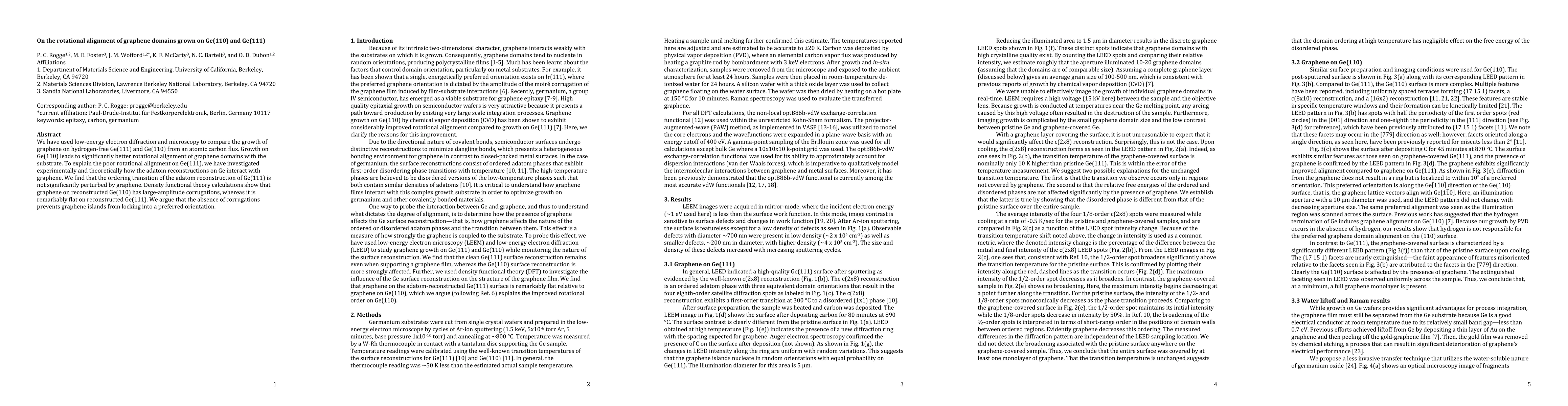 This study compares the rotational alignment of graphene domains on Ge(110) and Ge(111) using low-energy electron diffraction and microscopy. Ge(110) shows significantly better graphene domain alignment, while Ge(111) exhibits poor alignment due to the lack of corrugations in graphene, preventing orientation locking.