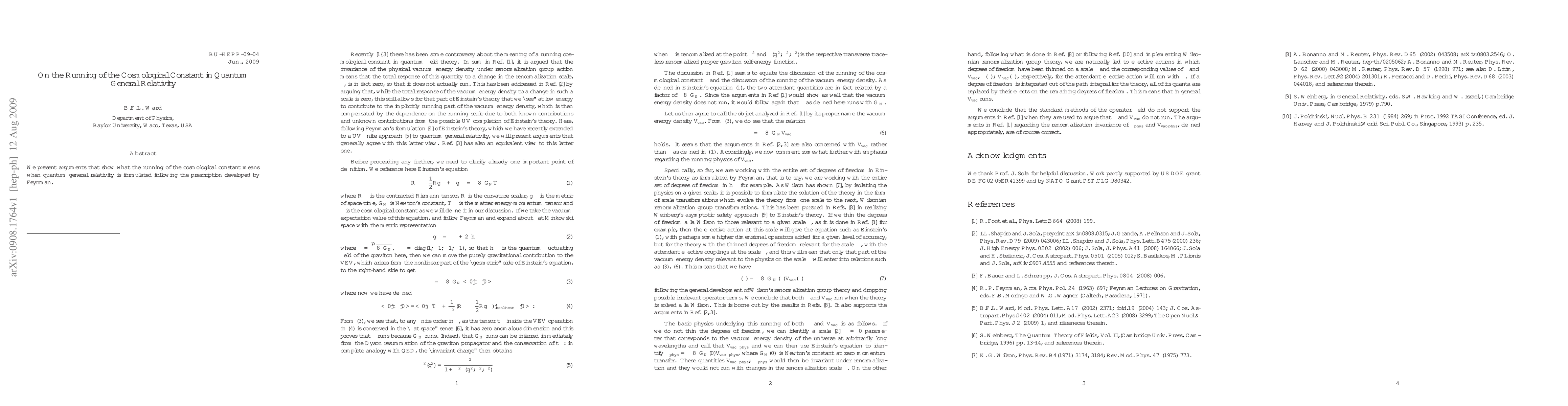 Summary: This paper explores the implications of the cosmological constant's behavior in quantum general relativity, utilizing Feynman's theoretical framework to analyze its running and significance. The study provides insights into how quantum effects influence the cosmological constant's evolution.
